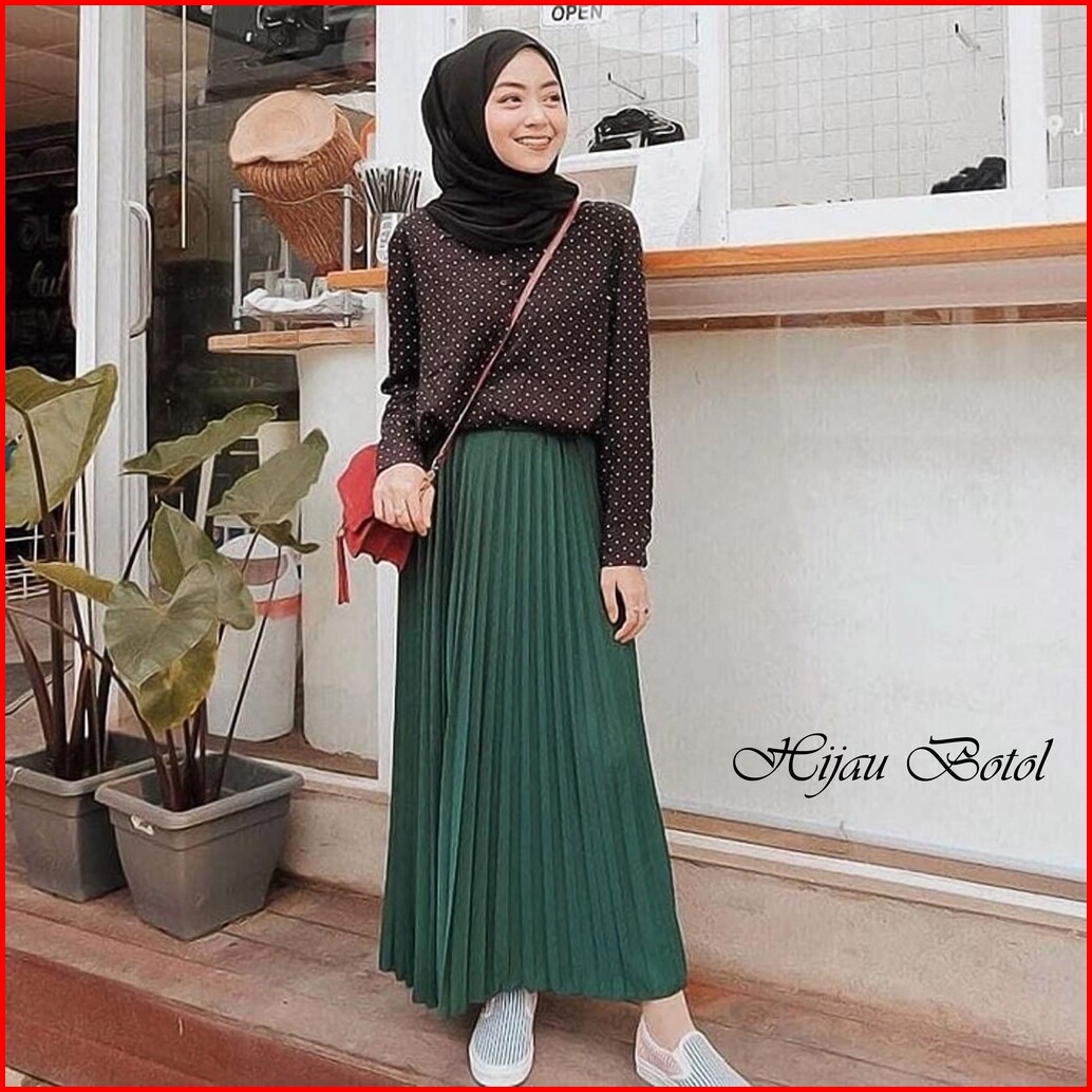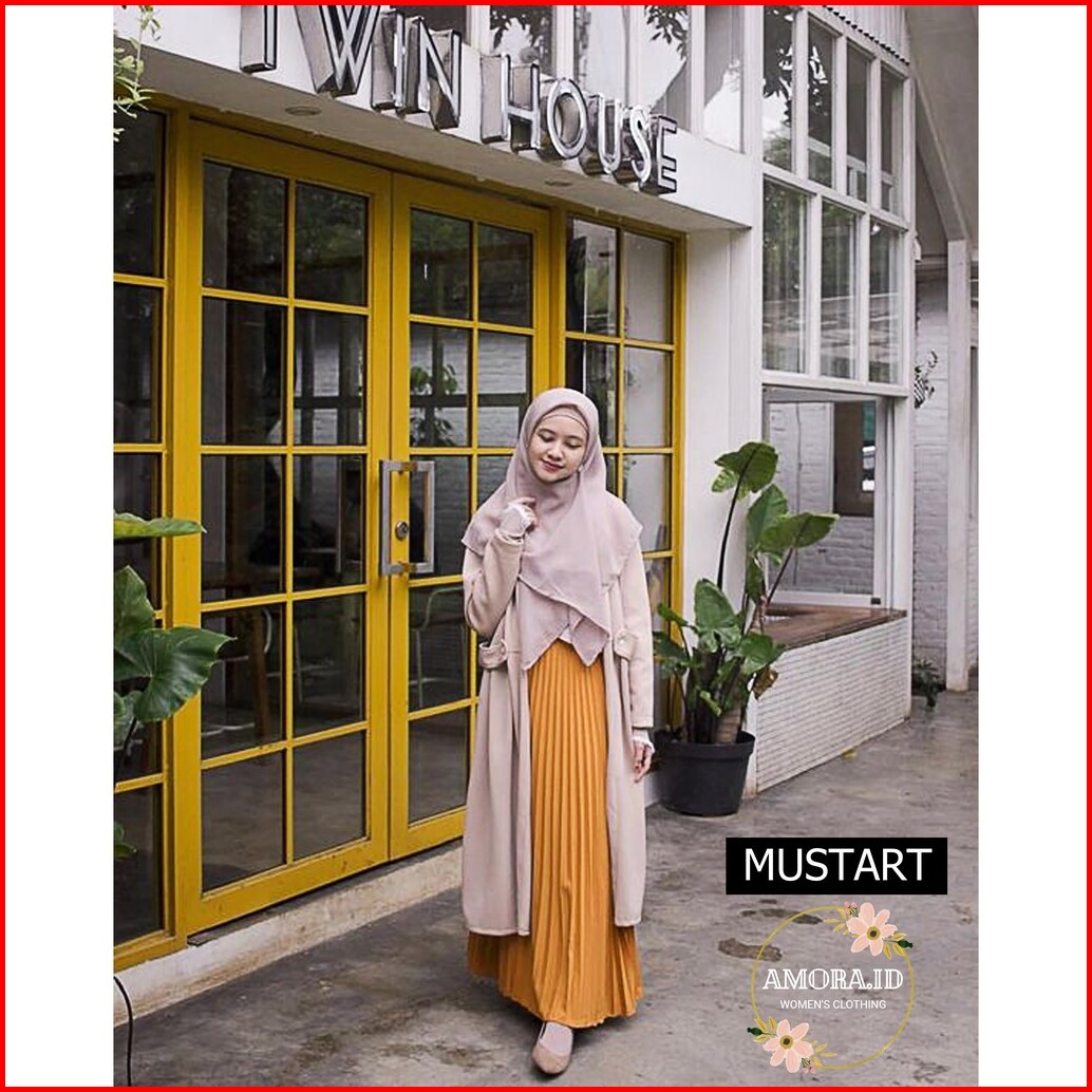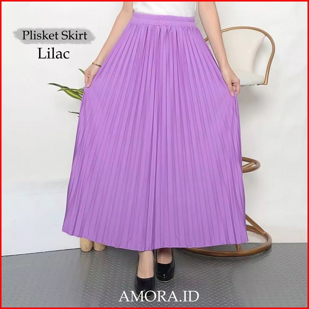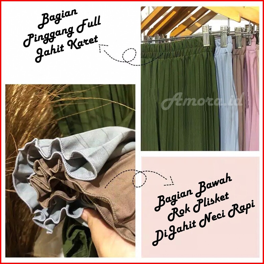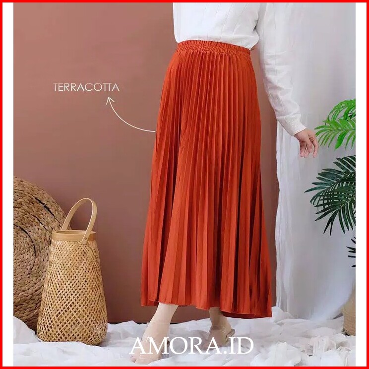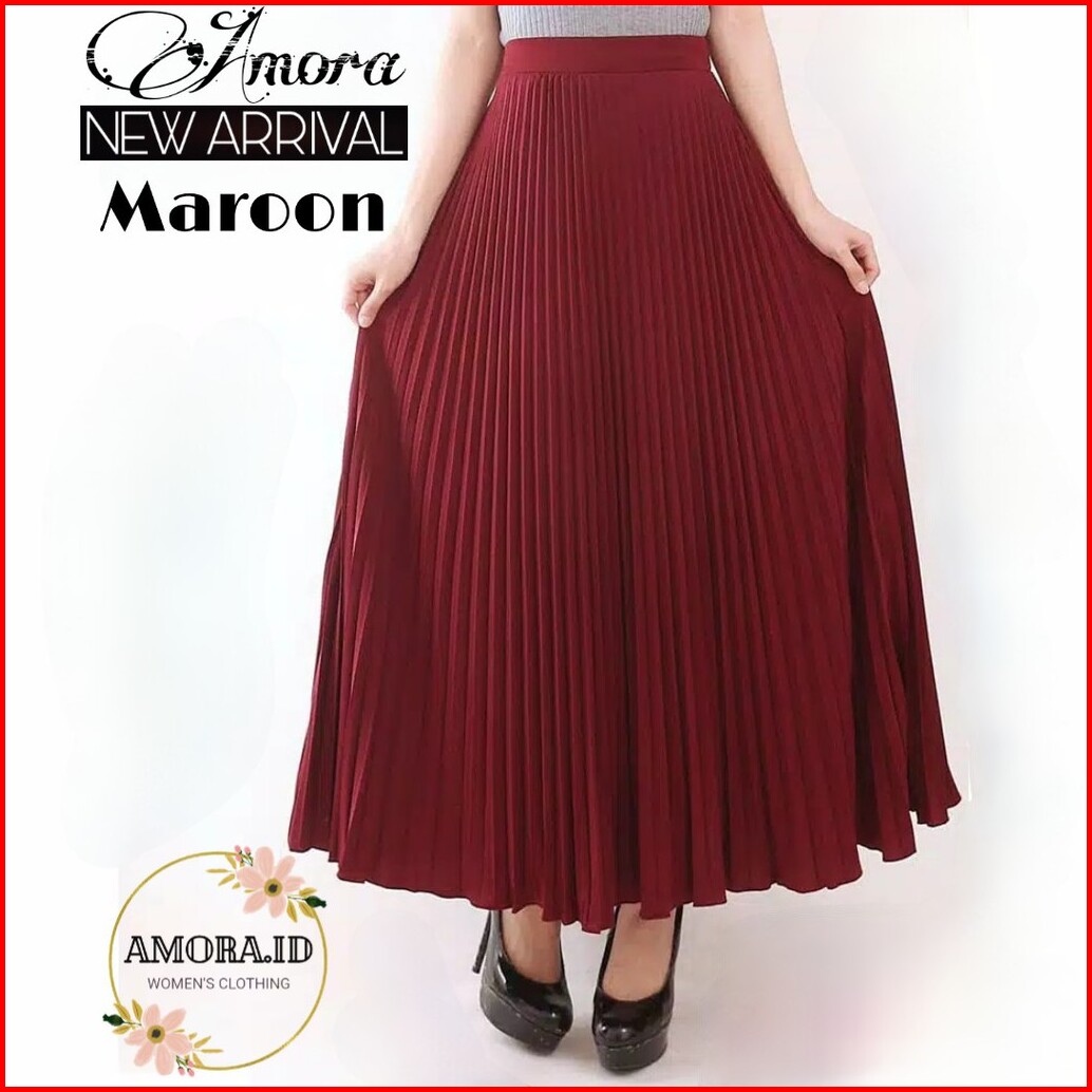 Amora - Rok Plisket Panjang Premium Model Mayung Tebal Pleated Maxi Skirt Fit S-xxl