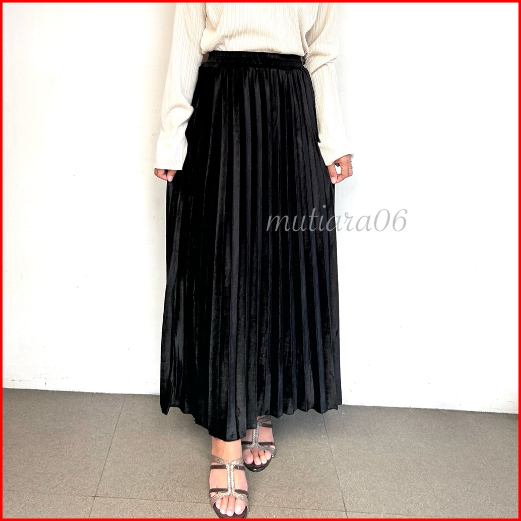 Rok Bludru Rok Plisket Panjang Premium