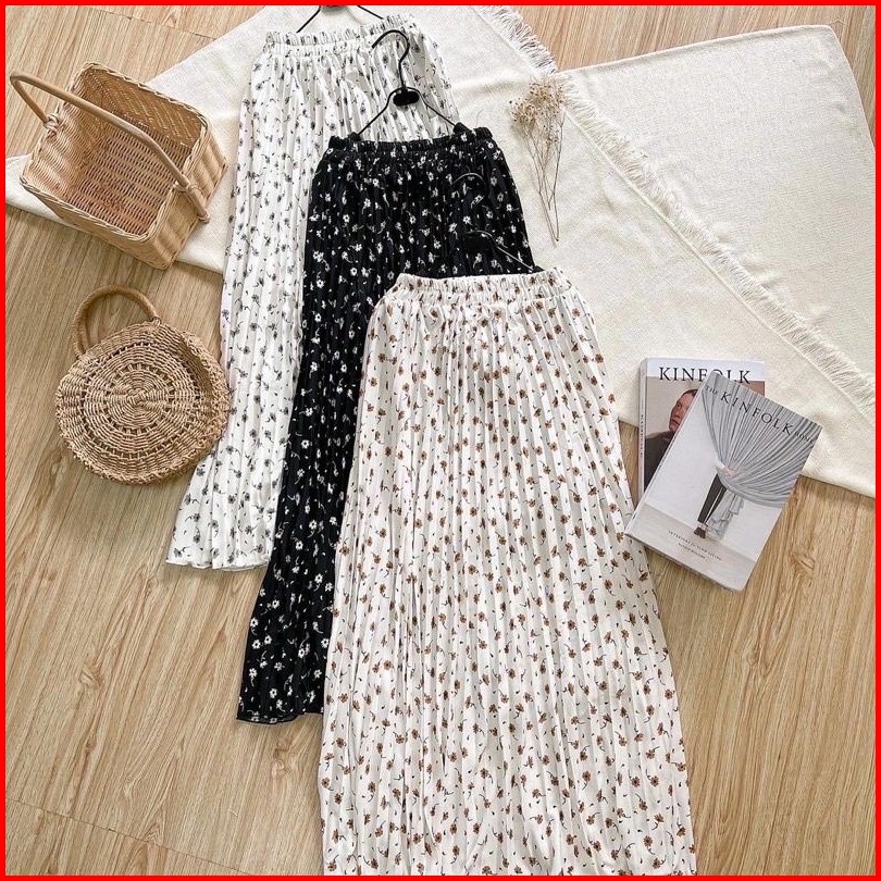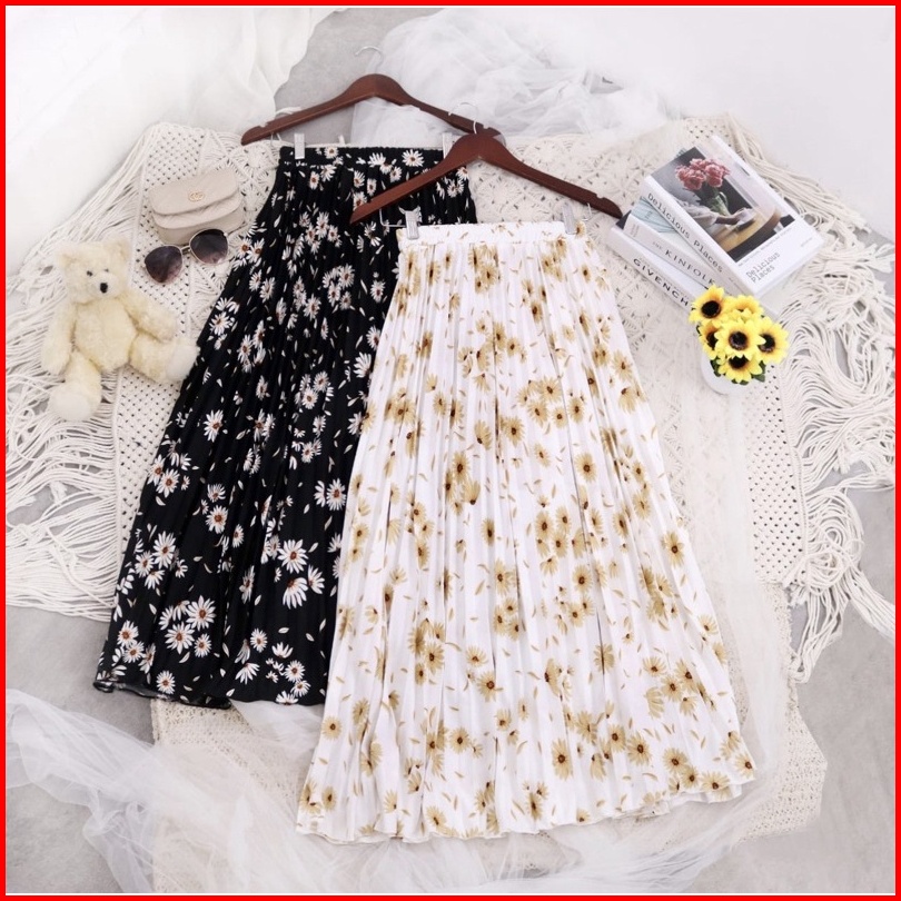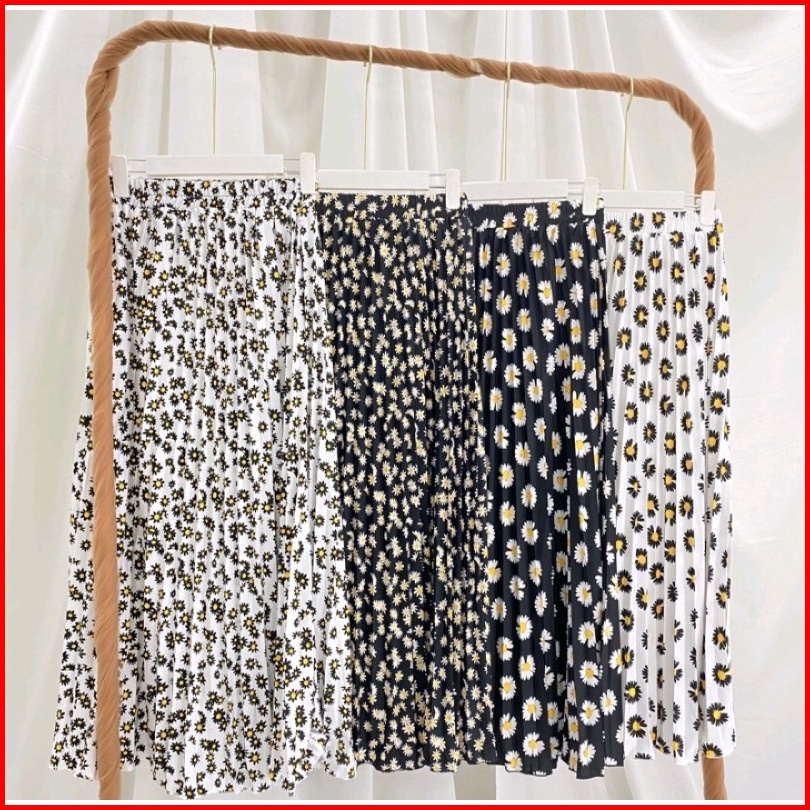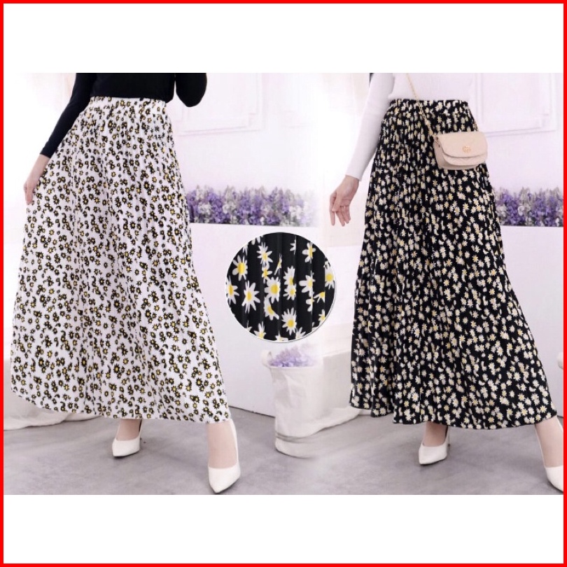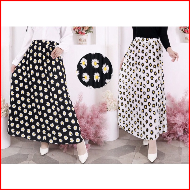Rok Plisket Motif Rok Daisy Rok Motif Bunga Plisket Premium Maxi Skirt Korea Style