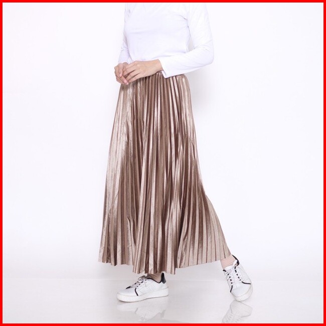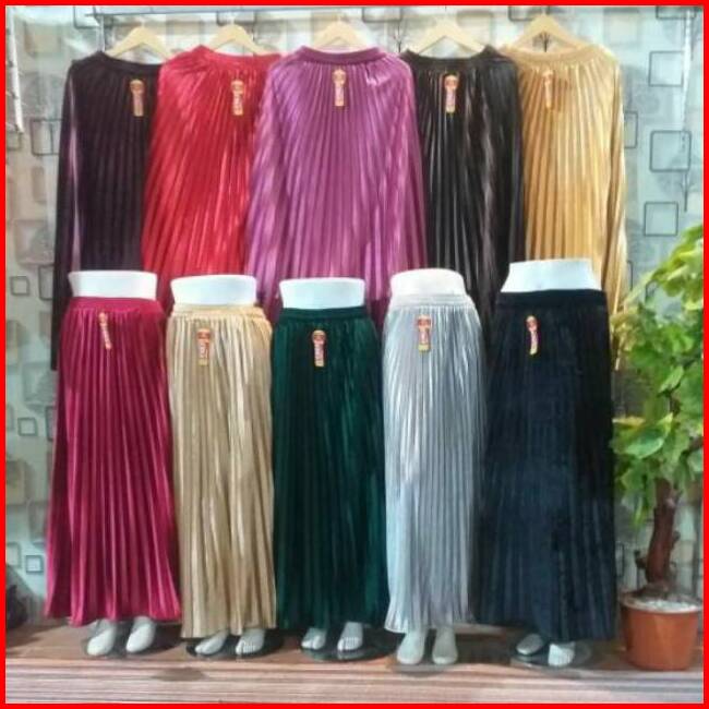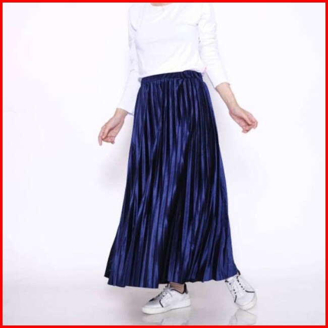 Rok Plisket Bludru Import Wanita High Quality Jatuh Tidak Nerawang