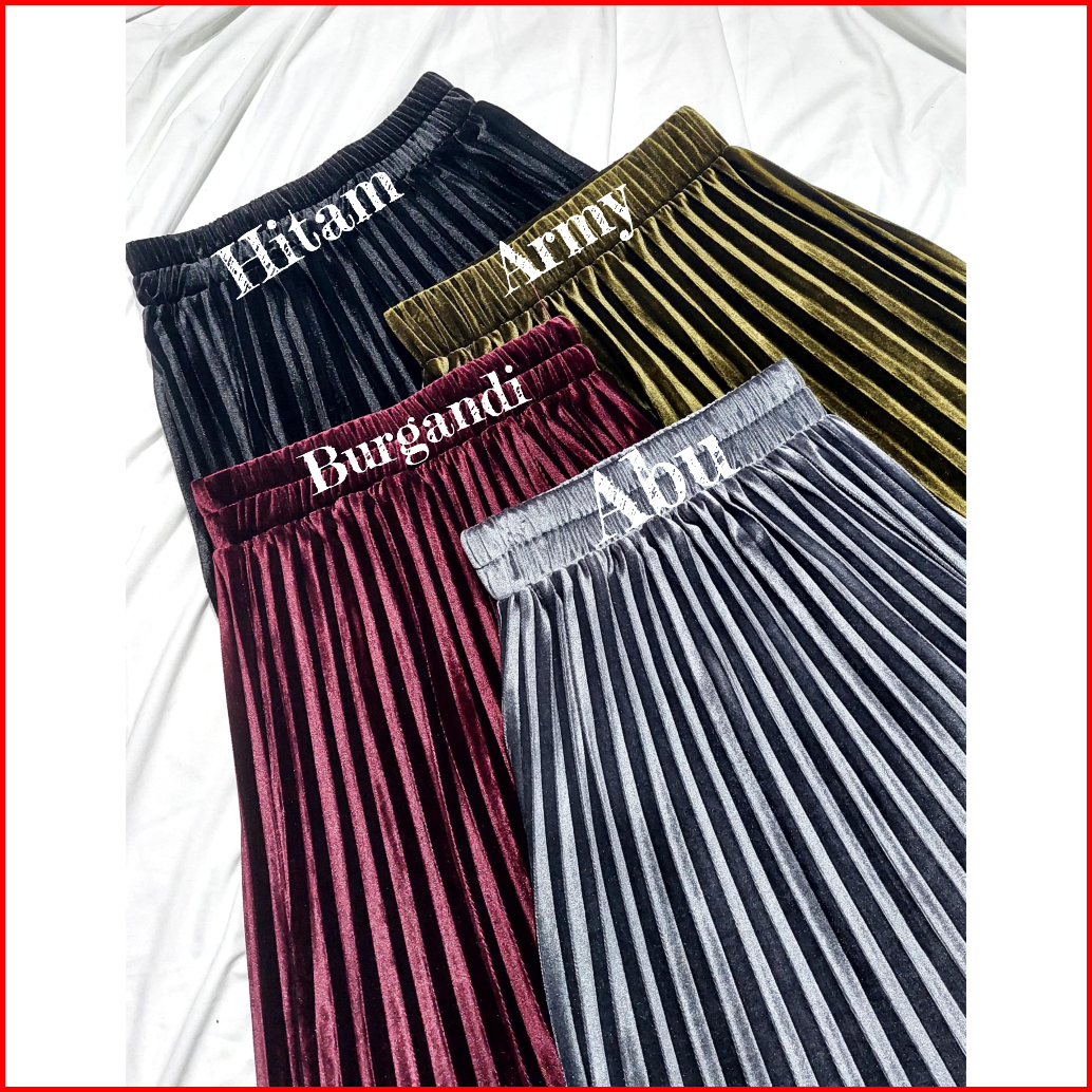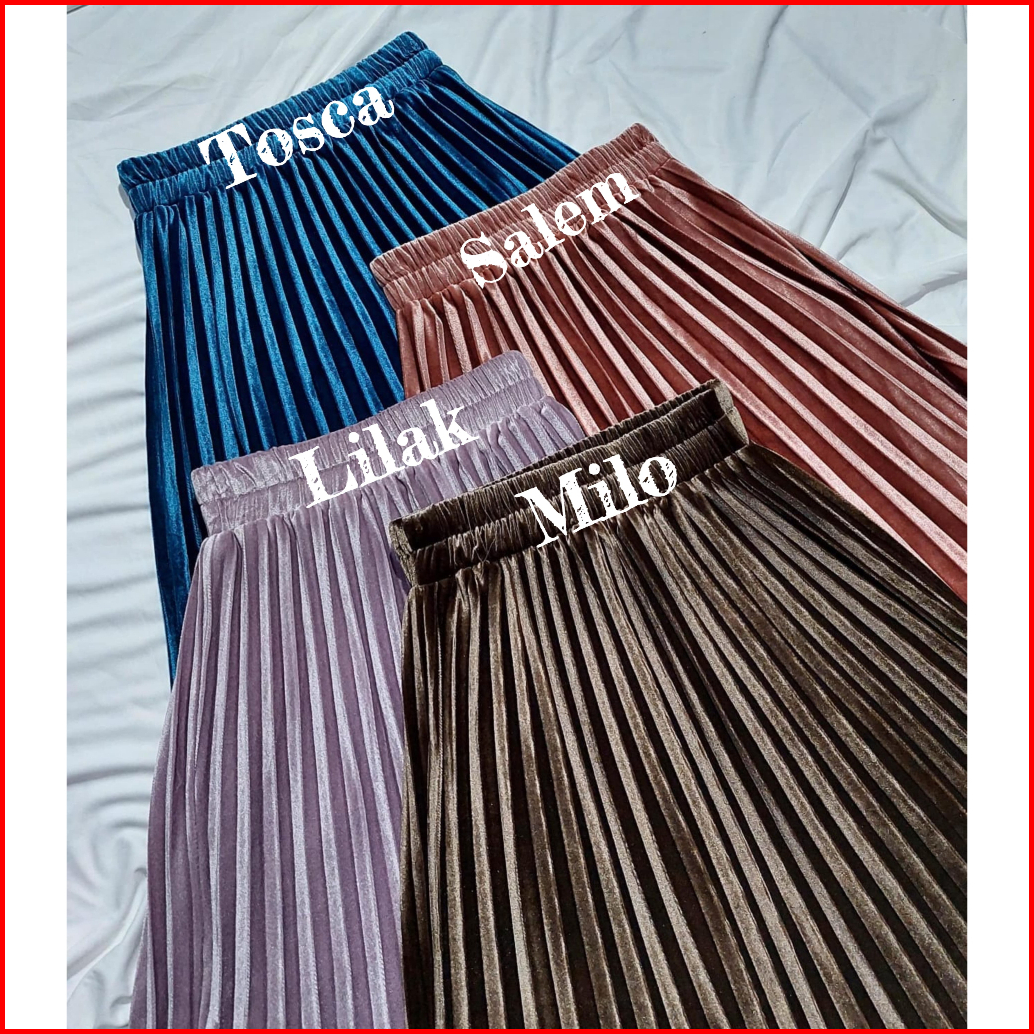 01 Rok Plisket Terbaru Rok Plisket Bludru Bludru Velvet Premium