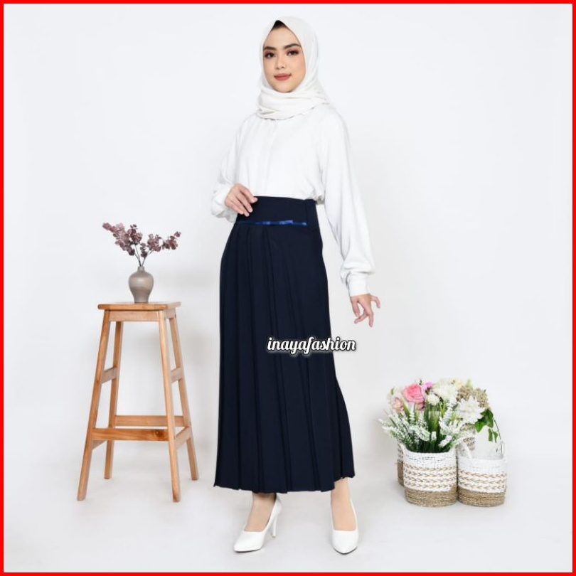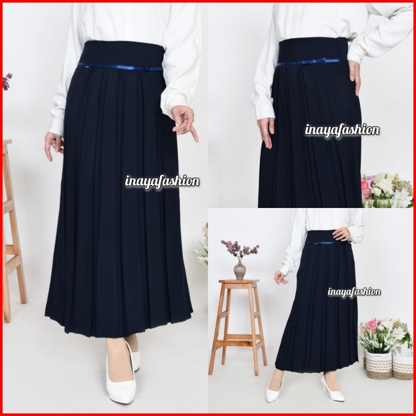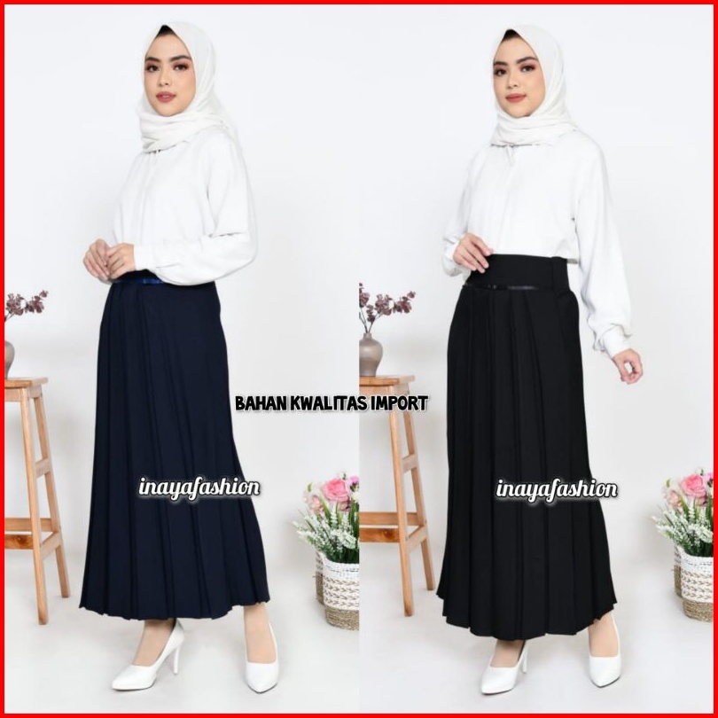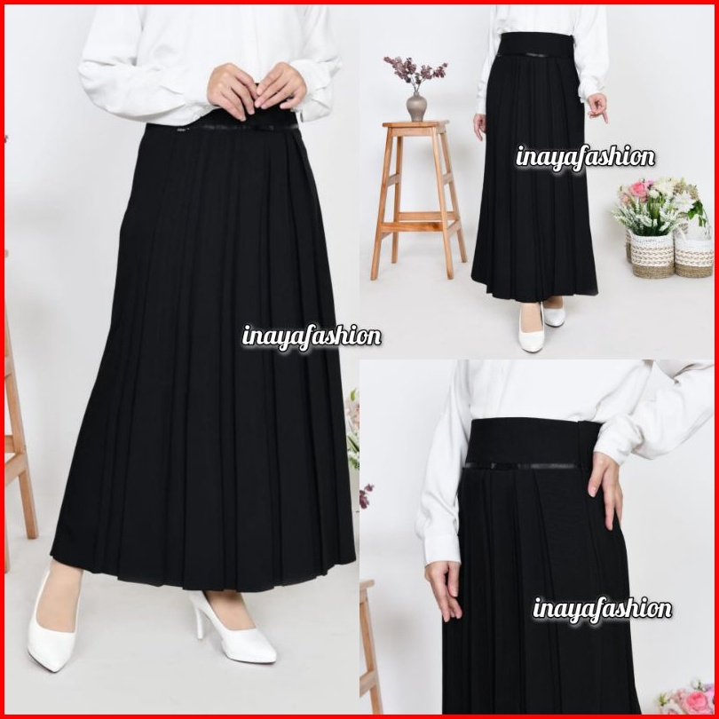 Rok Kerja Panjang Hitam Plisket Rok Panjang Rempel Rok Kerja Kantor Wanita Model A