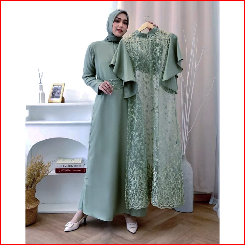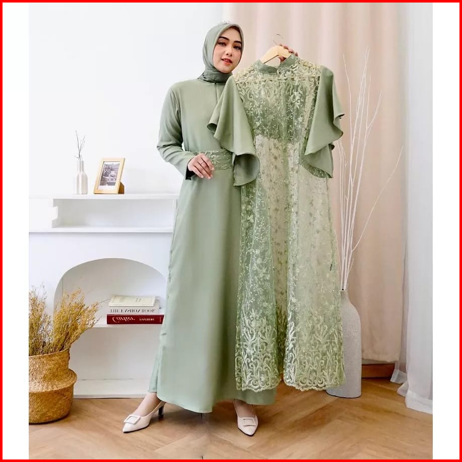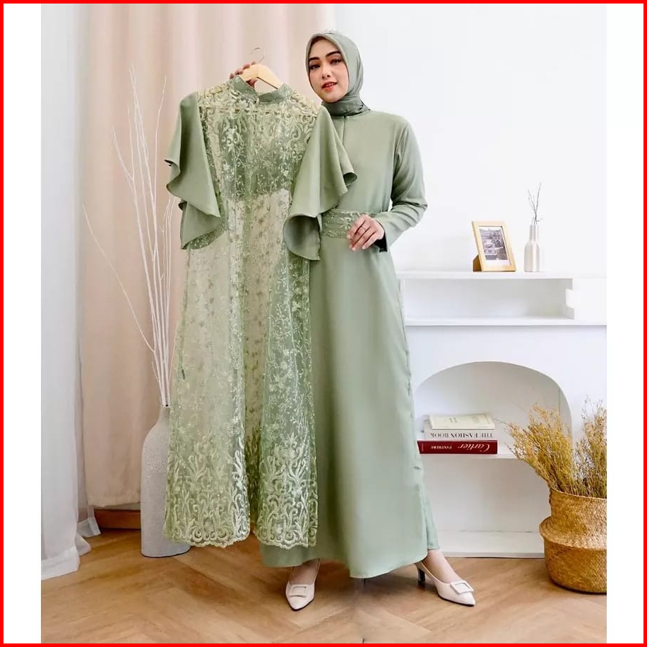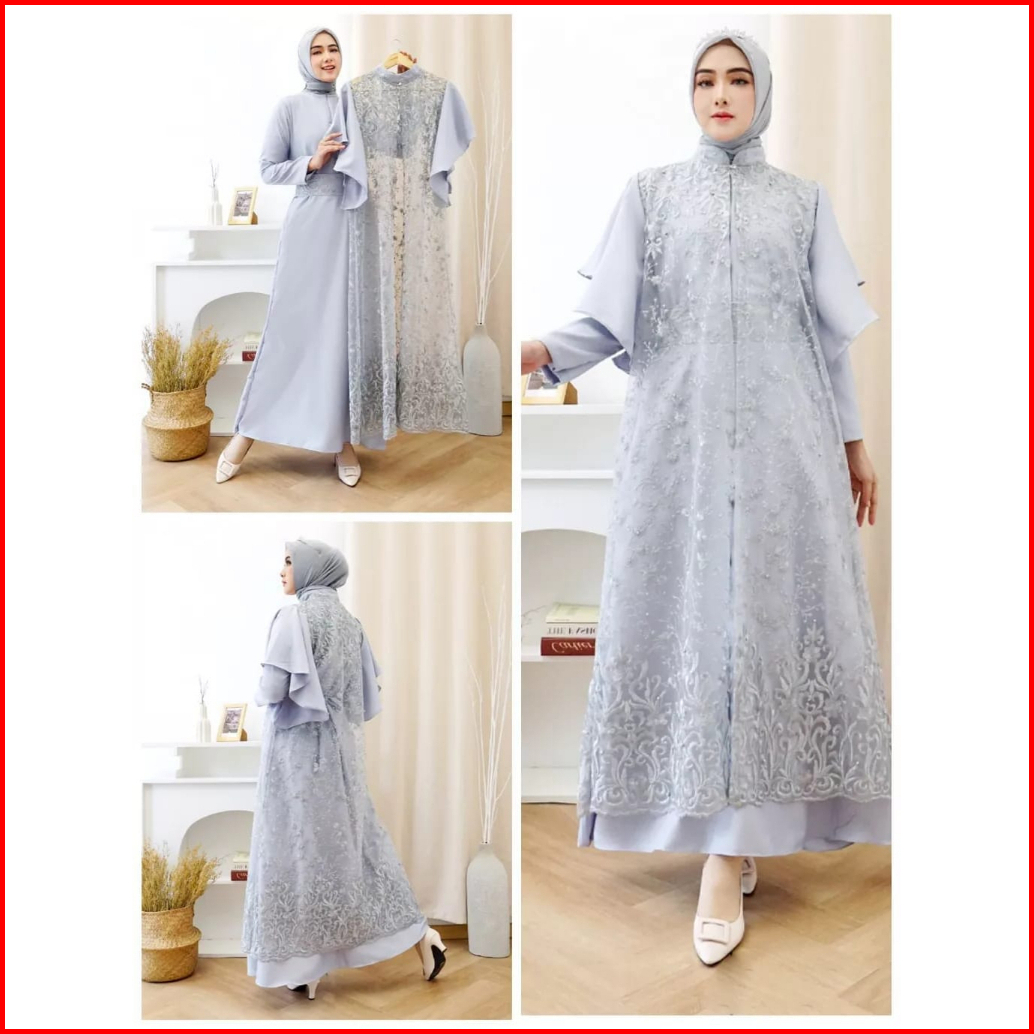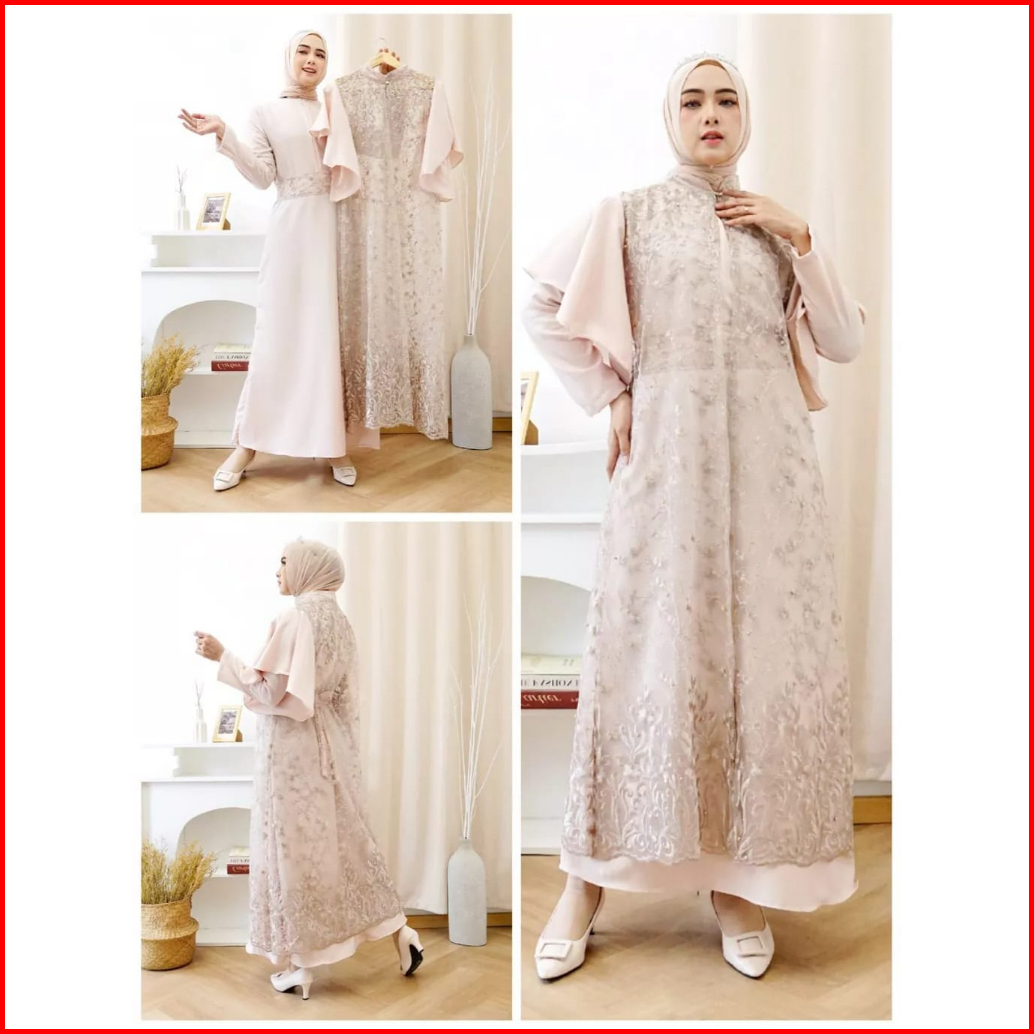Viona Dress Terbaru One Set Dress Inner Premium Free Belt Gamis Cardi Tile Kekinian Dress Kondangan Gamis Maxi Plus Oute