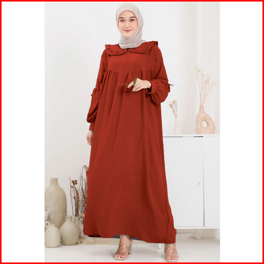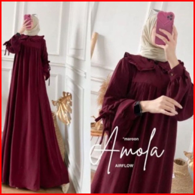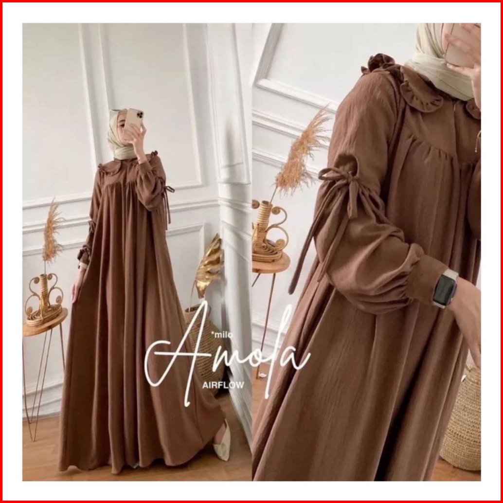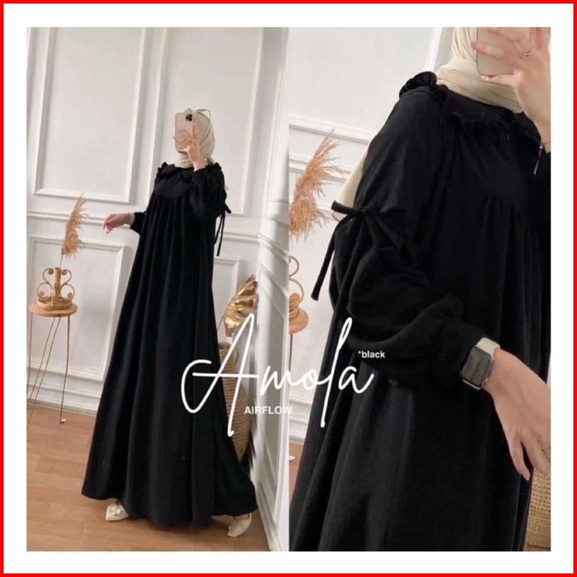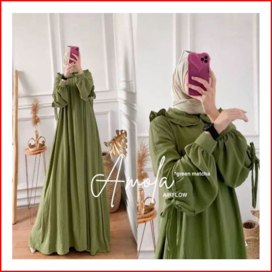 Gamis Wanita Amofa Maxi Dress Kain Crinkle Airflow Busui