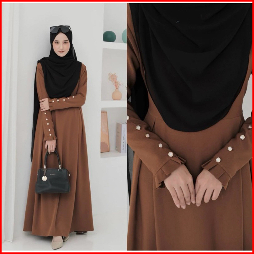 Hanum Dress By Sabrina - Gamis Linen Strech Bahan Halus Premium Desain Mewah Pergelangan Tangan