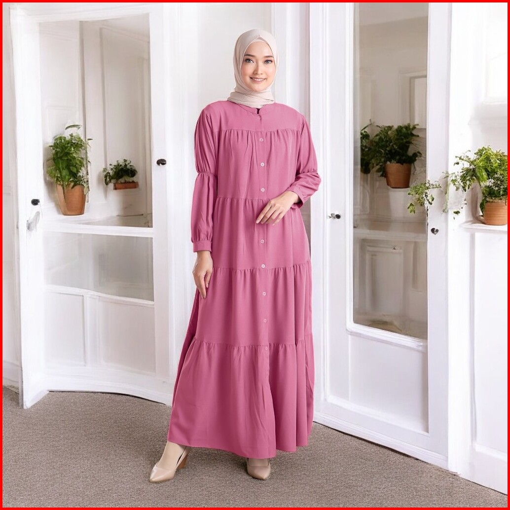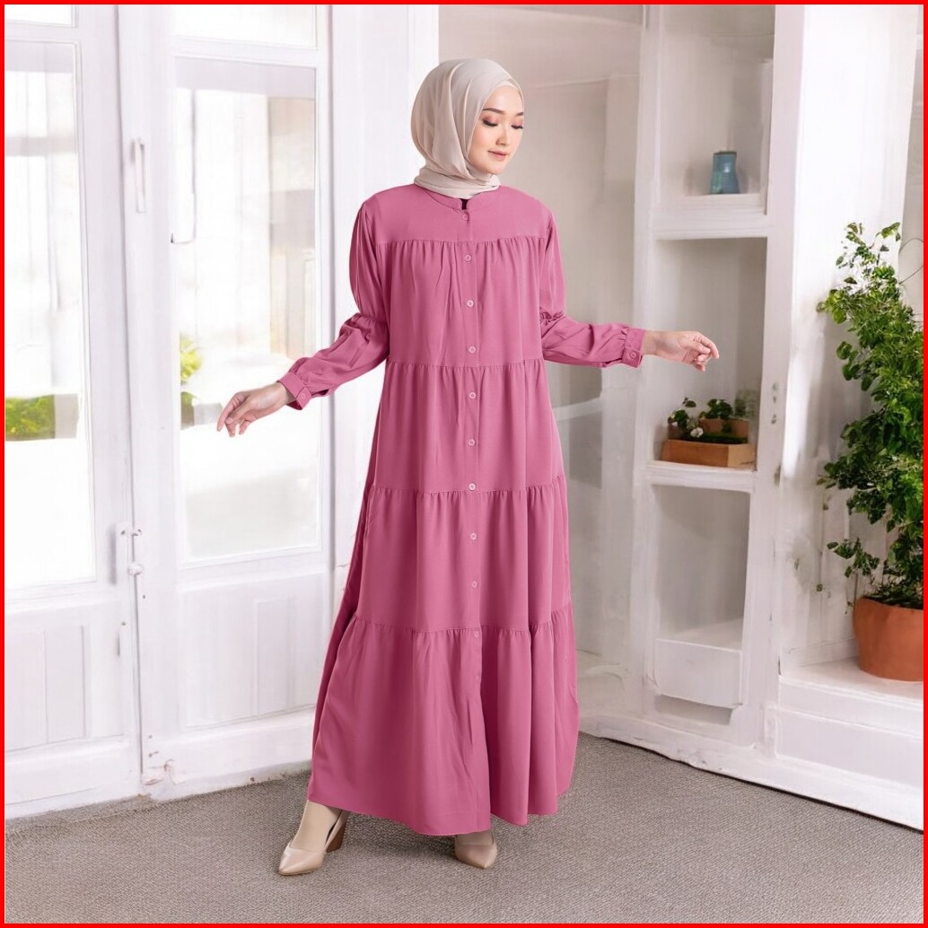Gamis Polos Wanita Zahira Size S M L Xl Dress Muslim Korean Style Variasi Ruffle Susun Outfits 2025