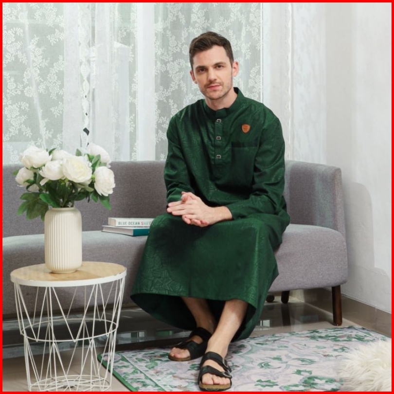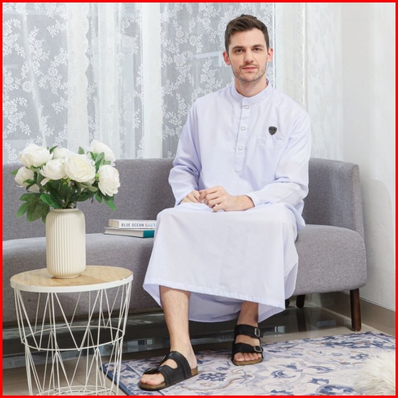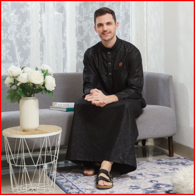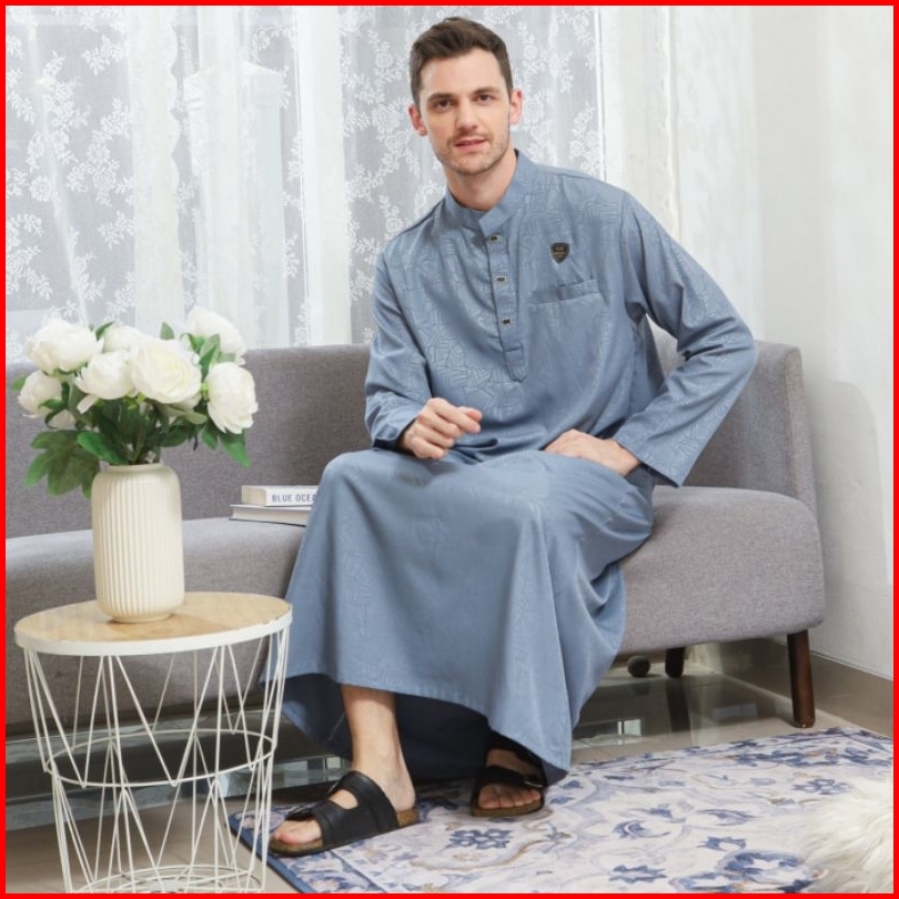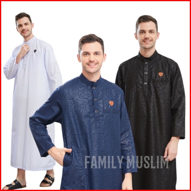 Family Muslim - Jubah Gamis Pria Dewasa Lengan Panjang Slimfit Plus Peci Bahan Emboss As-sultan Navy