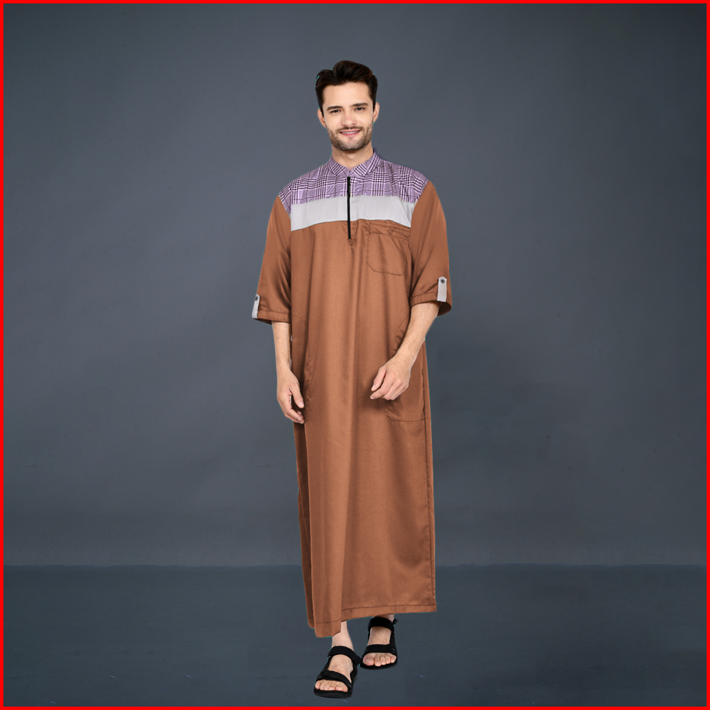 Kawan Muslim - Jubah Gamis Pria Ikhwan Modern Motif Flanel Lengan Pendek