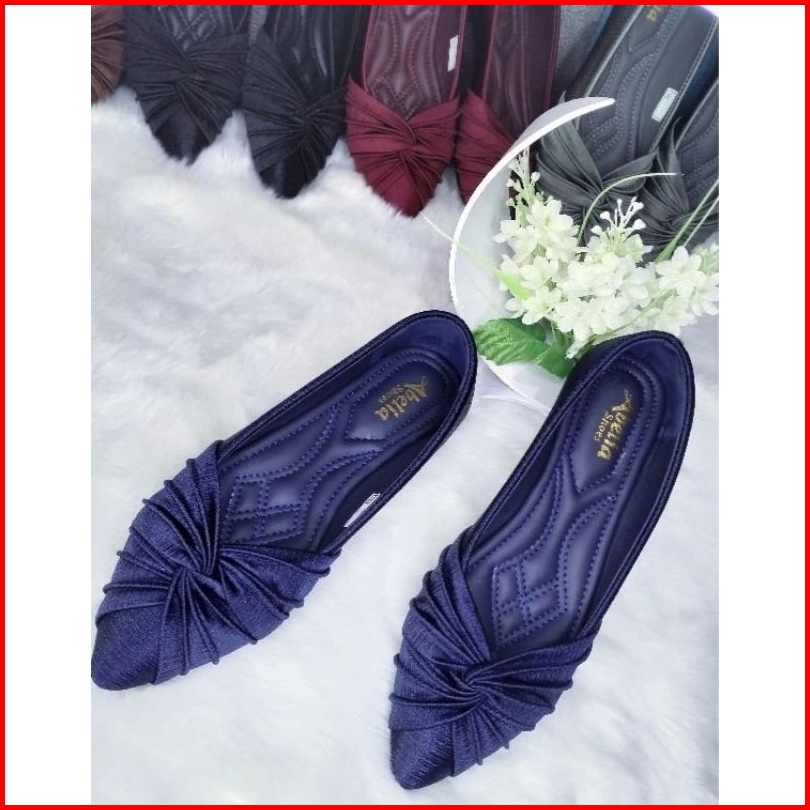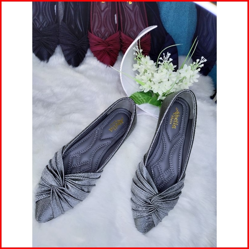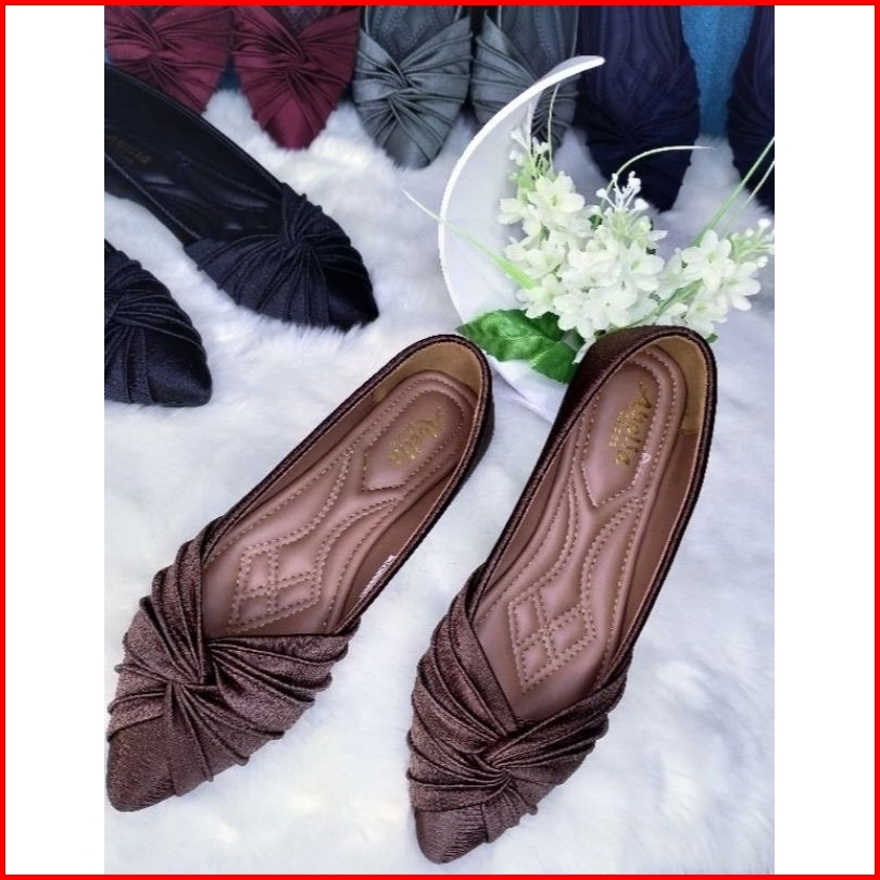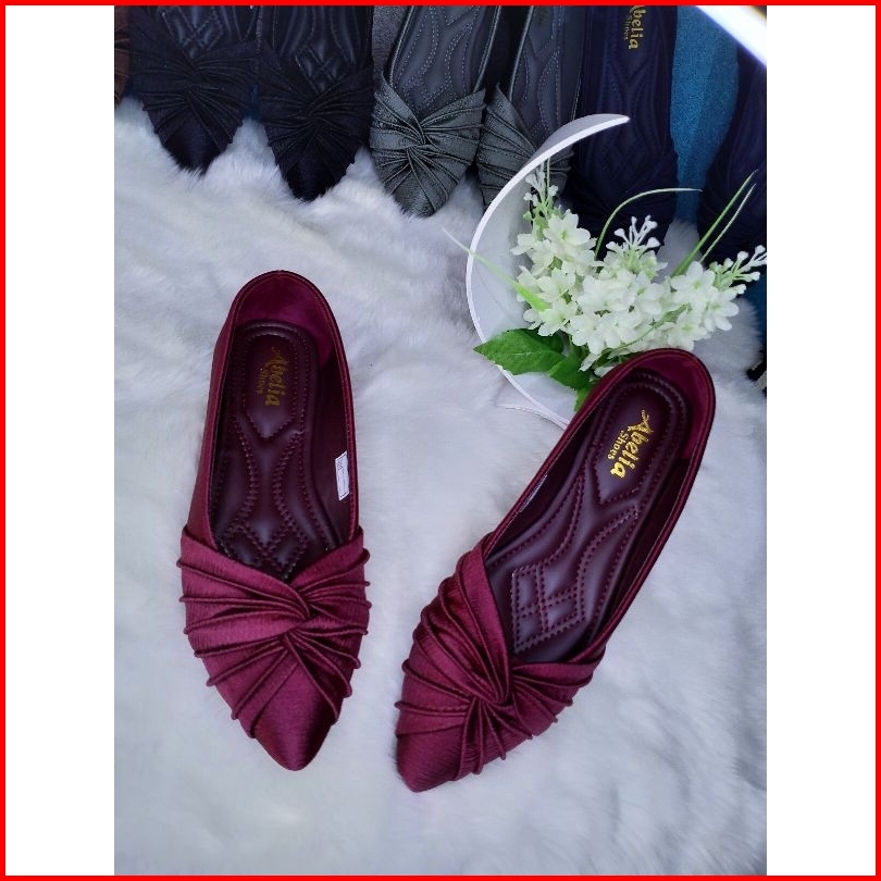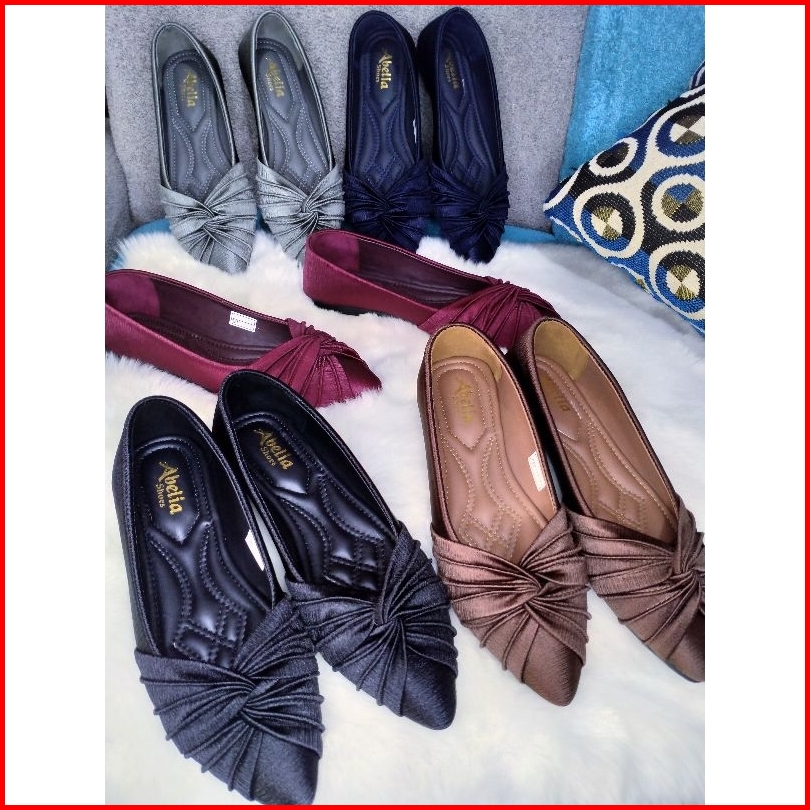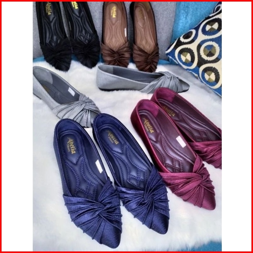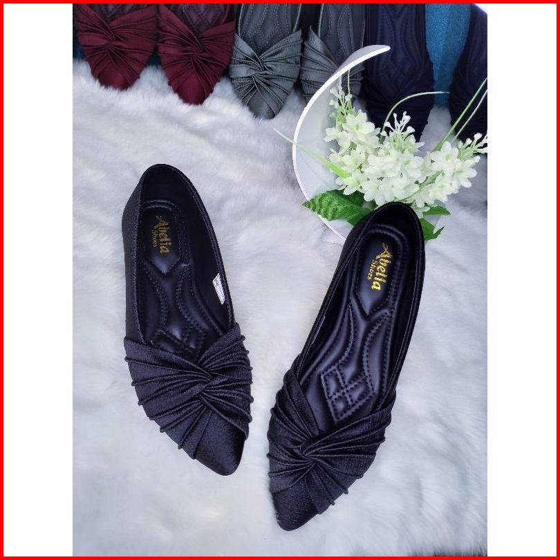 Abelia Shoes. Sepatu Slip On Flatshoes Satin Silk Salur Kekinian