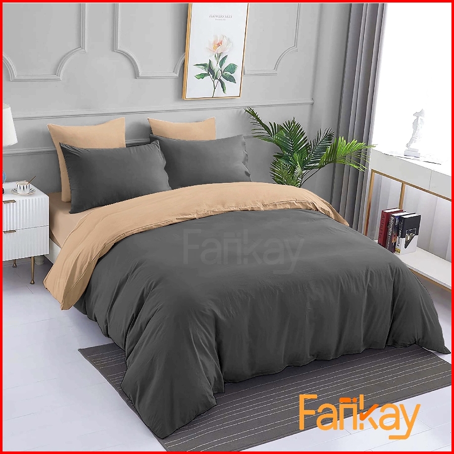 Bed Cover Set Dark Grey Khaki - Ukuran Lengkap 90x200 - 200x200 - Fankay