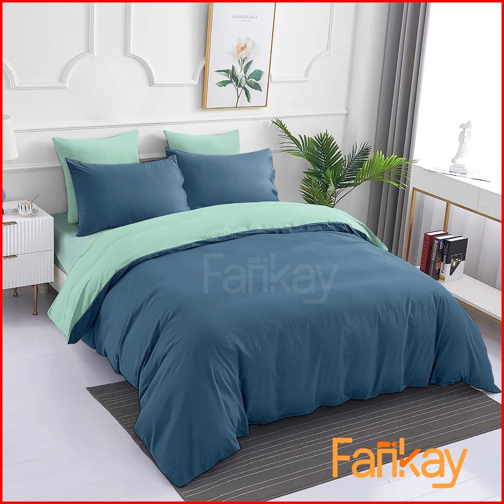 Bed Cover Set Sprei Kombinasi Warna Polos Ukuran 180x200 160x200 200x200 - Fankay Bedcover