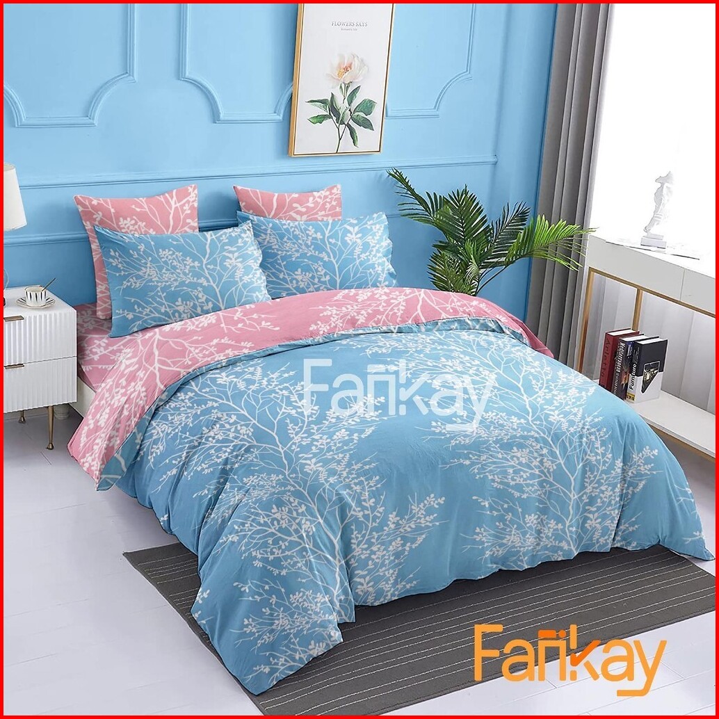Bed Cover Set Sprei Jeju Blue Jeju Pink - Ukuran Lengkap 90x200 - 200x200 - Fankay Bedcover