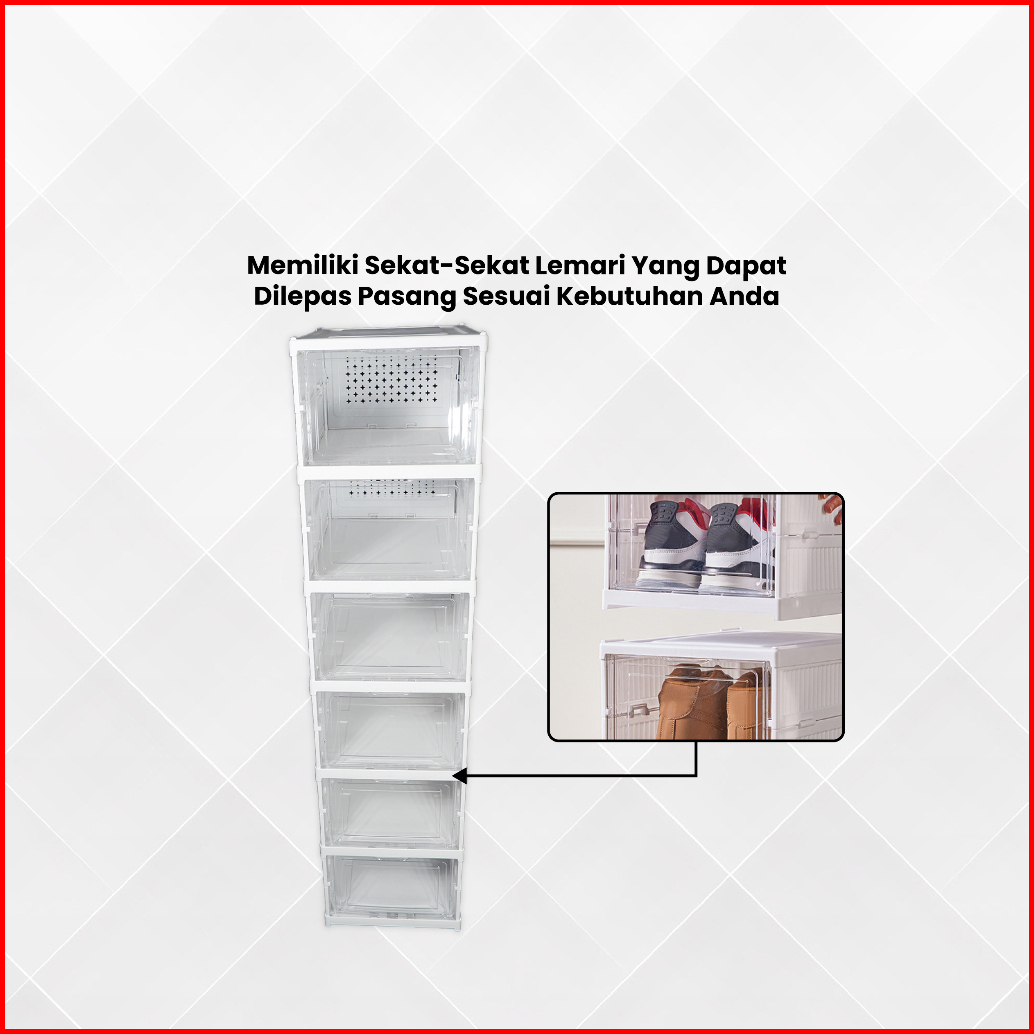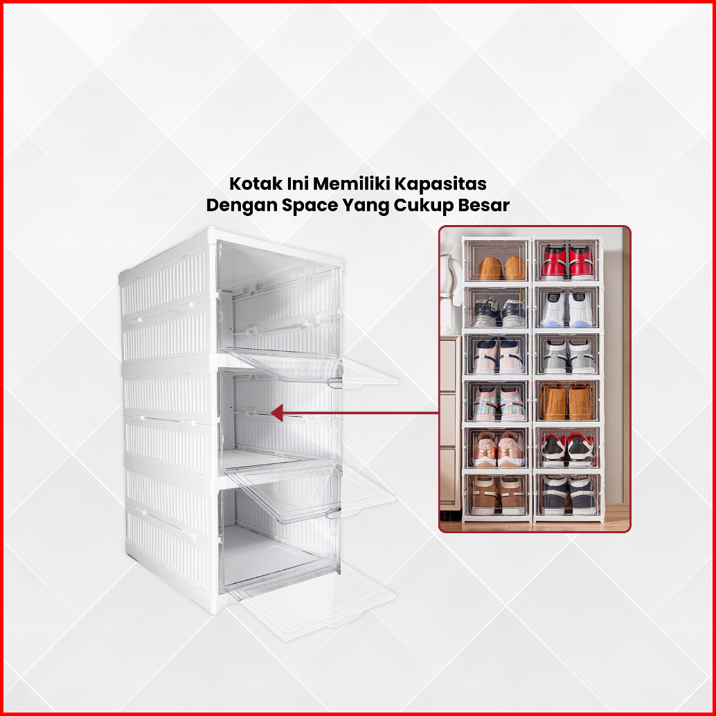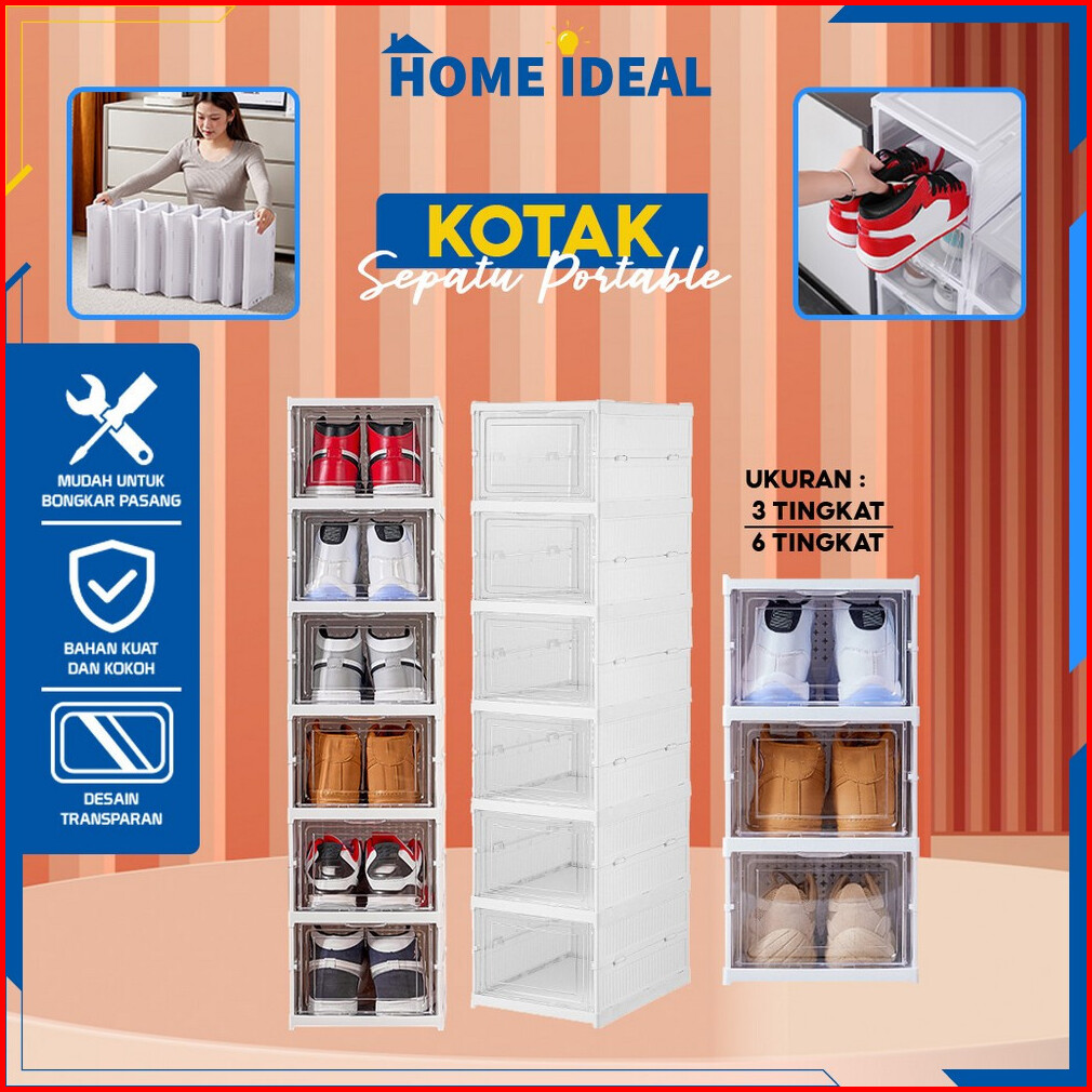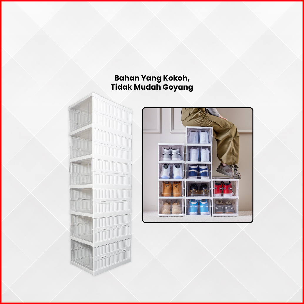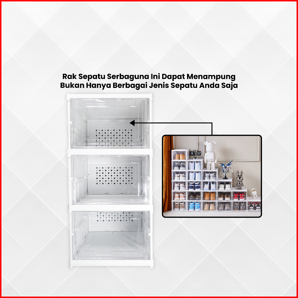 Rak Sepatu Lipat Anti Debu Lemari Multifungsi Serbaguna Rak Susun Kotak Sepatu Portable Lemari Plastik Shoe Box Praktis