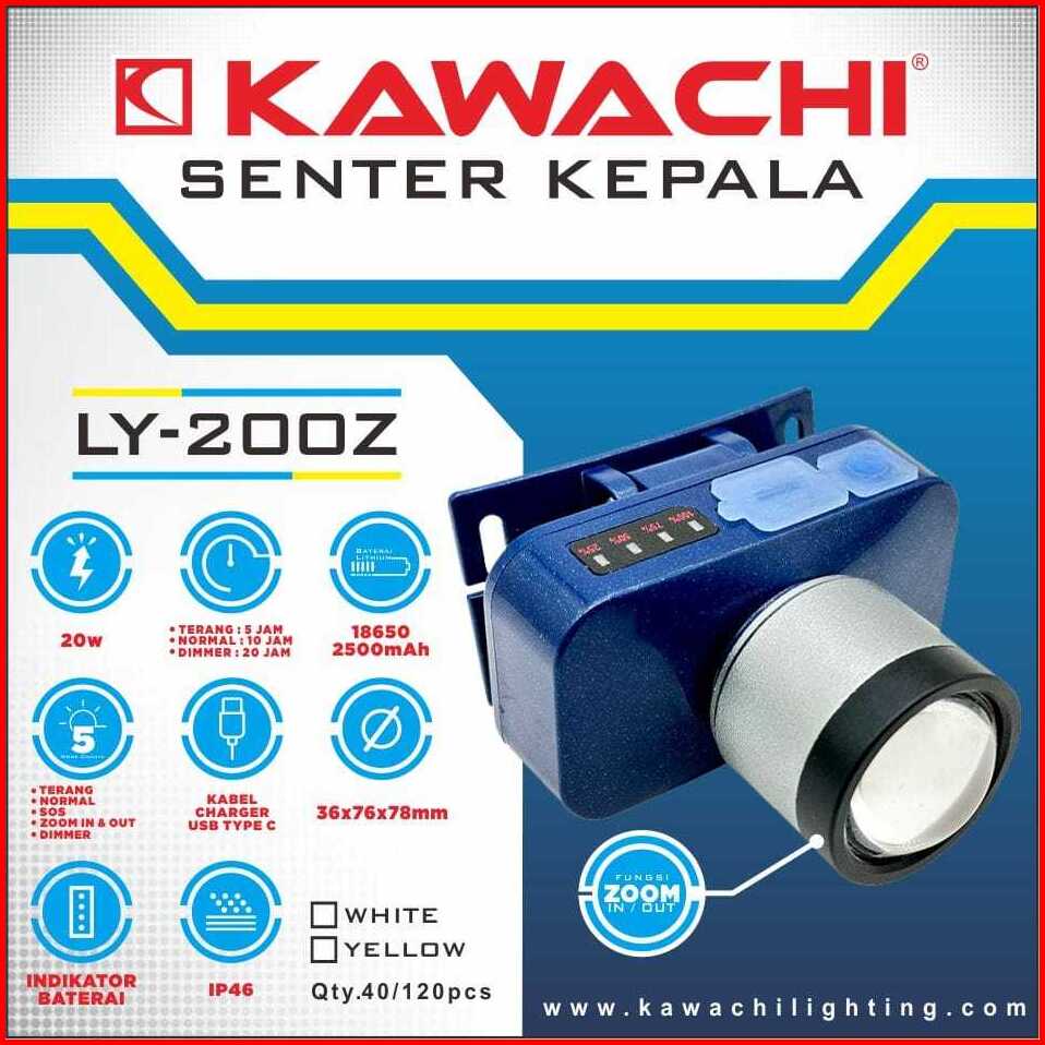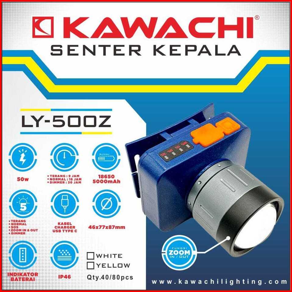 Senter Kepala Headlamp Led Kawachi 50watt Zoom Jarak Jauh Tahan 30 Jam Charger Usb Type C Waterproof