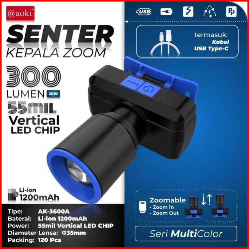 Senter Kepala Zoom Aoki Ak-3675a 60w Pro 1000 Lumen - Tahan Lama - Zoom Jarak Jauh