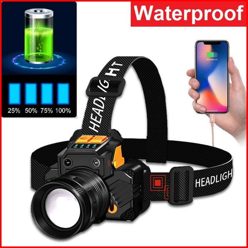 Senter Kepala Led T50 - Zoom Dan Sensor - Usb Type C