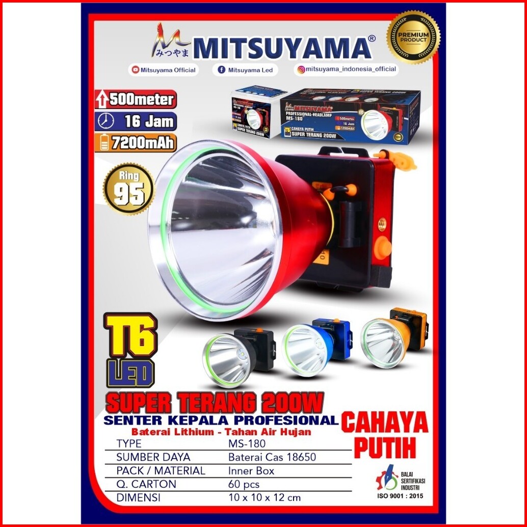 Senter Kepala Led Mitsuyama Ms-180p 200watt - Jarak Jauh - Super Terang - Tahan Lama Hingga 15 Jam