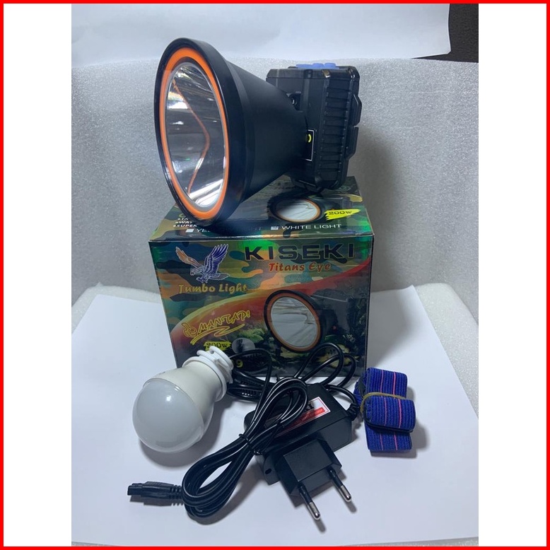 Headlamp Led Waterproof Kiseki Ck-399 200 W Senter Kepala Kiseki 200 Watt Ck-399 Cahaya Putih Baterai 5000mah Tahan Hing