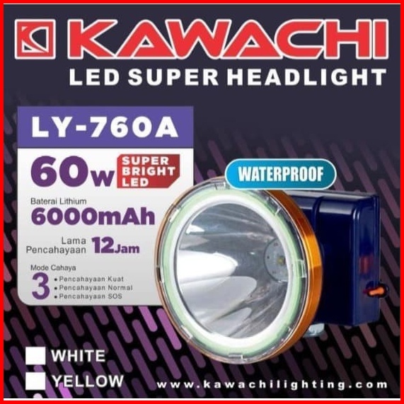 Senter Kepala Headlamp Kawachi 60w Ly-760a Waterproof Cahaya Putih Super Terang