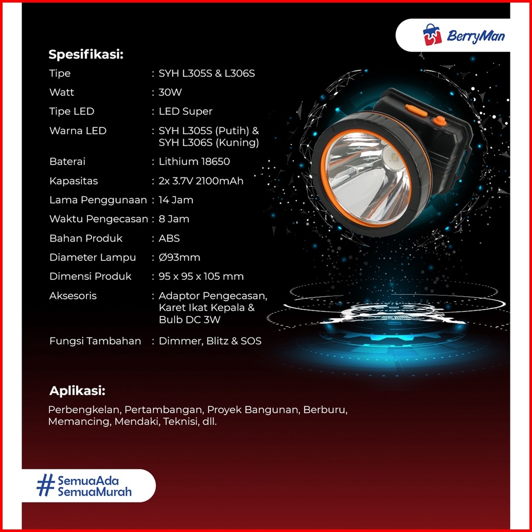 Senter Kepala Selam Led 30w Surya Syh L305s Water Resistant