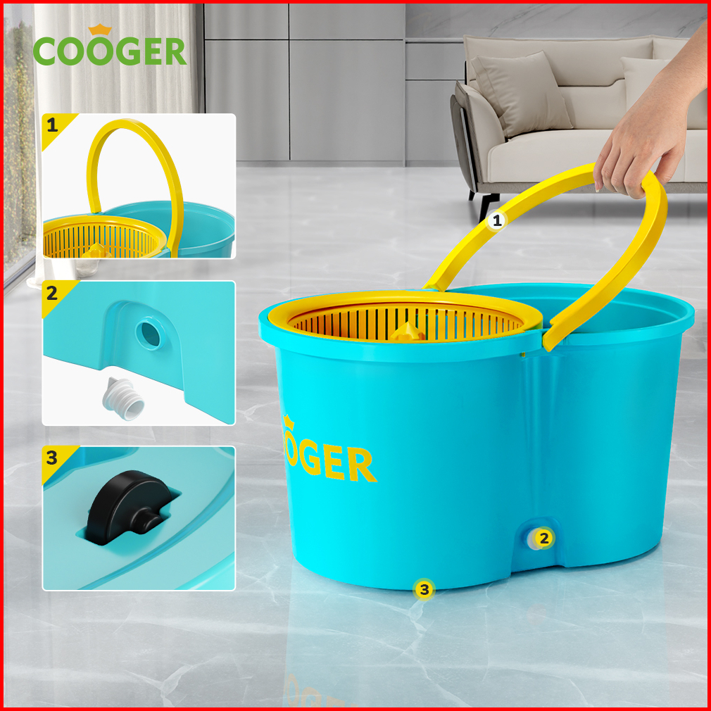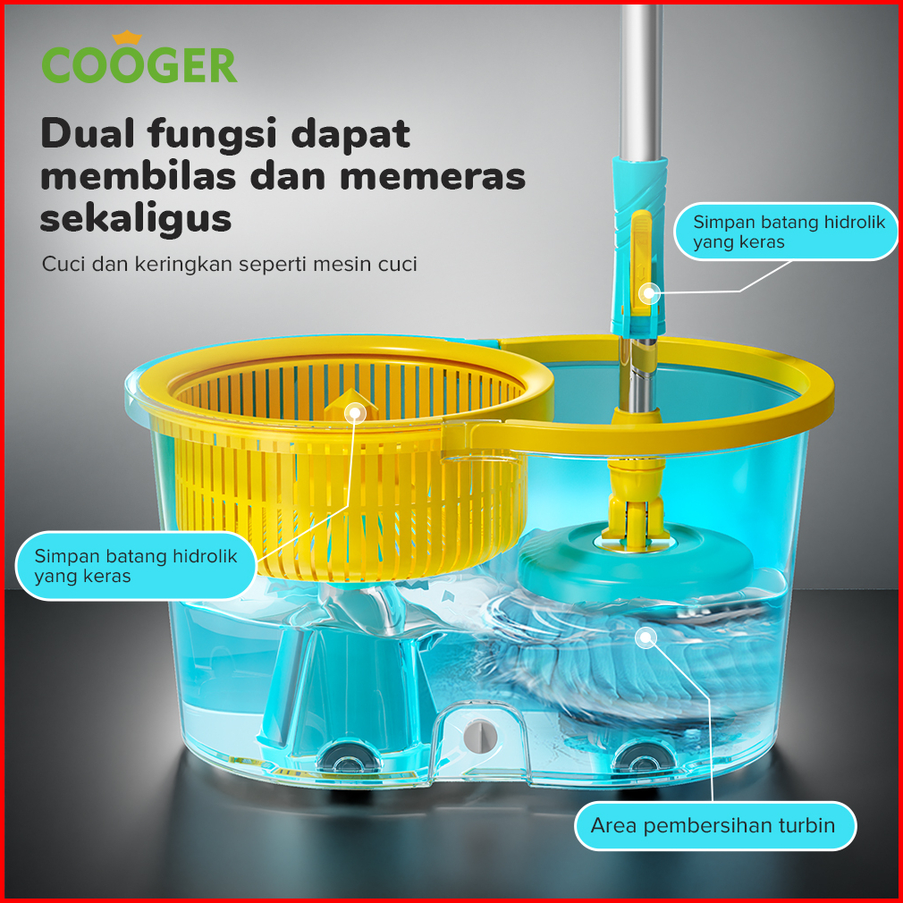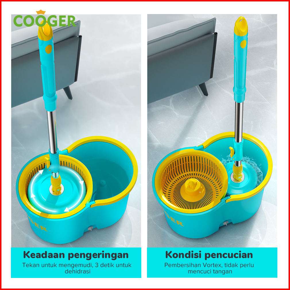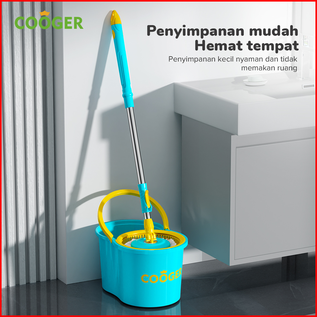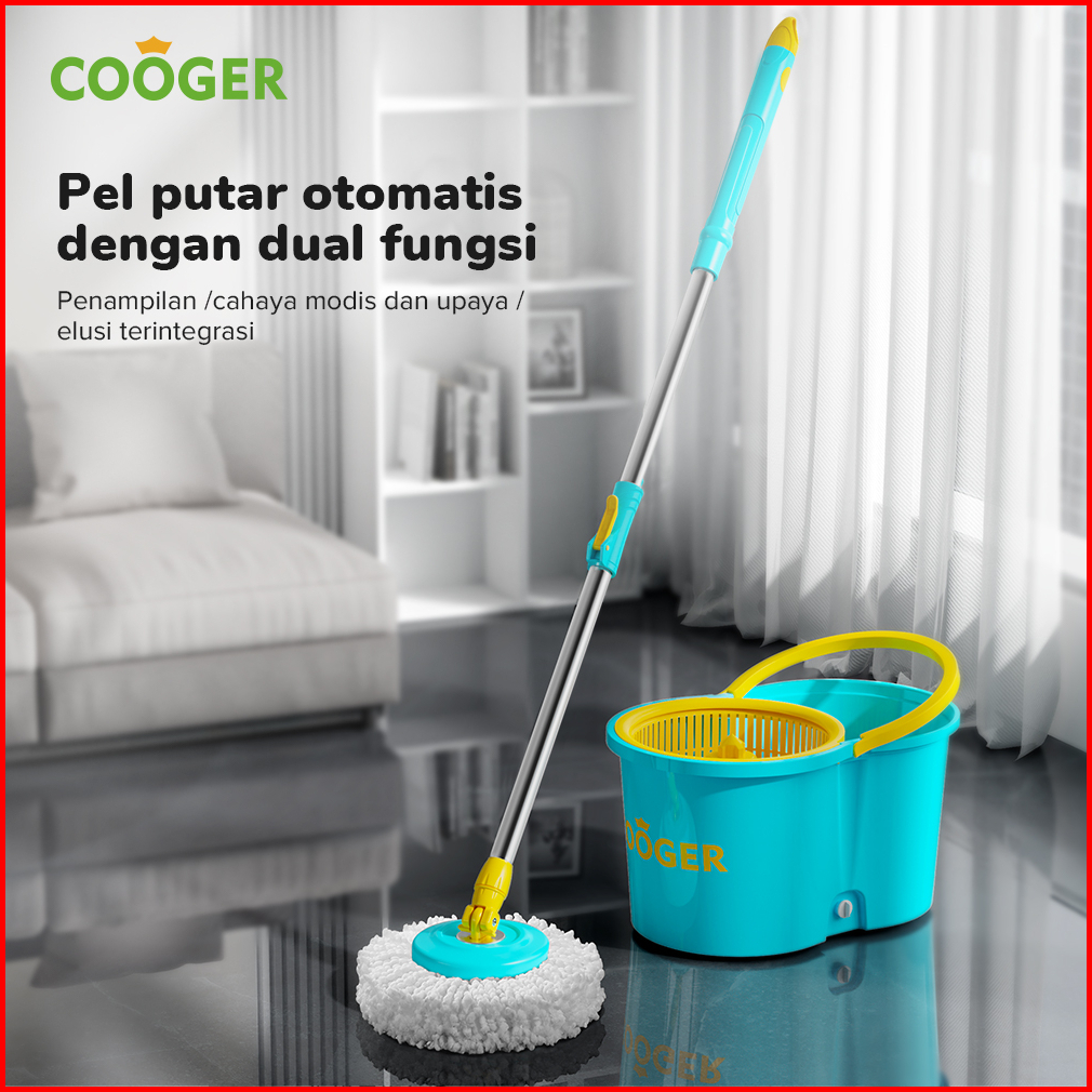 Cooger Alat Pel Bucket Spin Mop Pencuci Otomatis 2in1 Alat Pel Putar Portable Spin Mip Multifungsi Hemat Tenaga