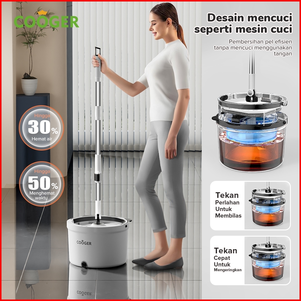 Cooger Alat Pel Lantai Praktis Dapat Putar Otomatis 2 In 1 Ember Air Kotor Pisah Bentuk Panda Single Spin Mop Panda Buck
