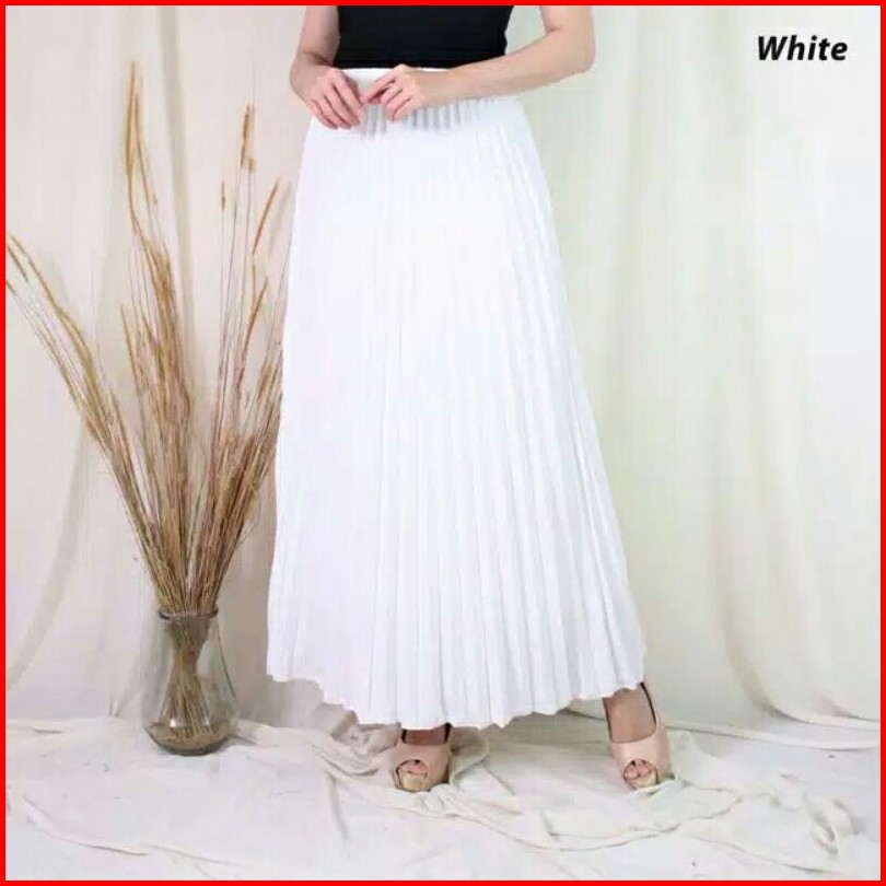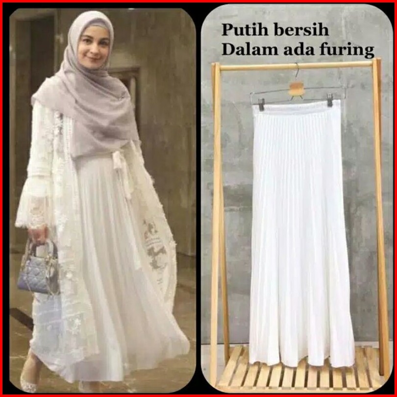 Rok Plisket Putih Dalam Ada Furing Premium Hyget White Pinggang