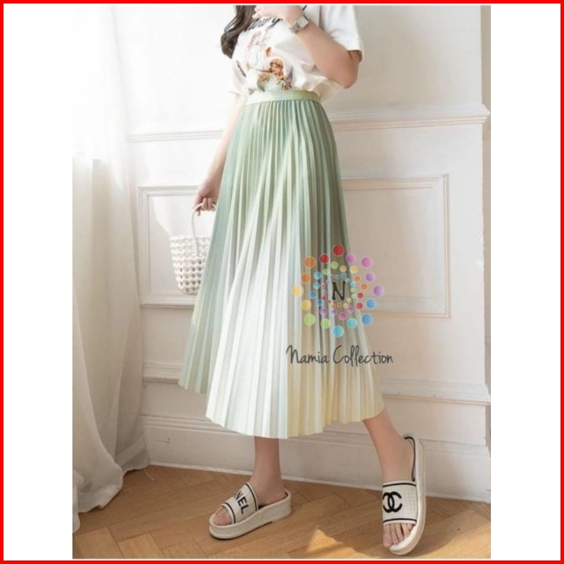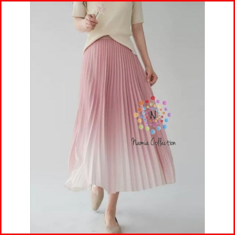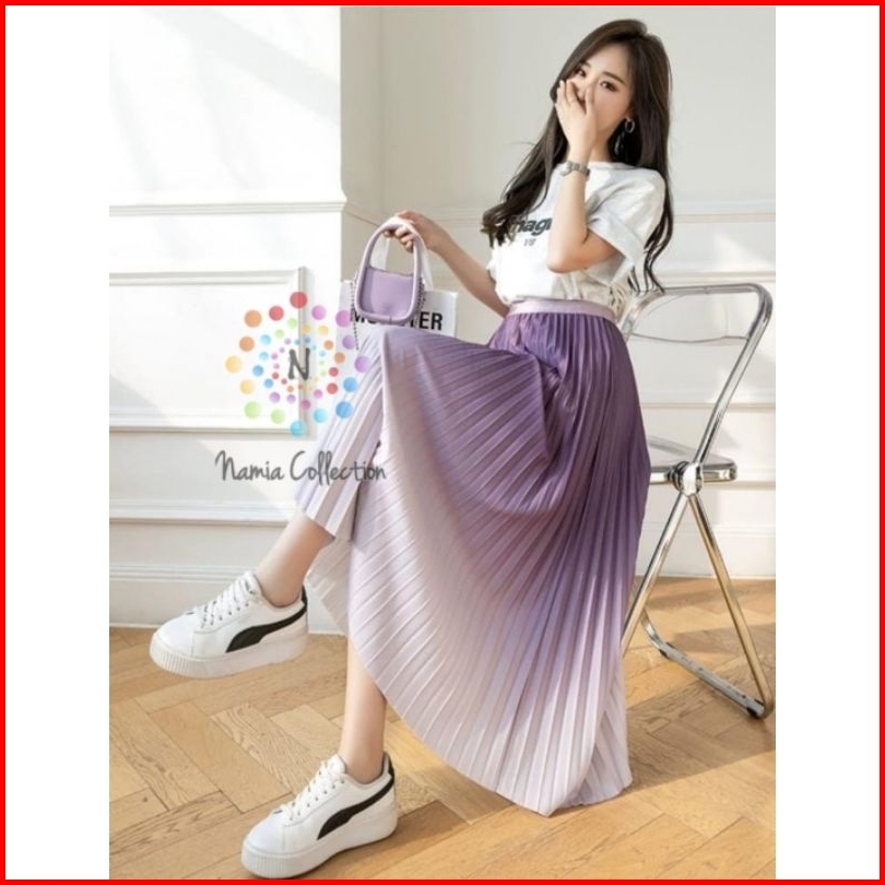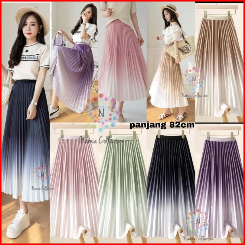 Rok Plisket Gradasi Korea Import Premium Midi Variasi 5 Warna