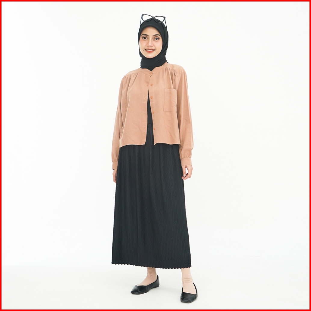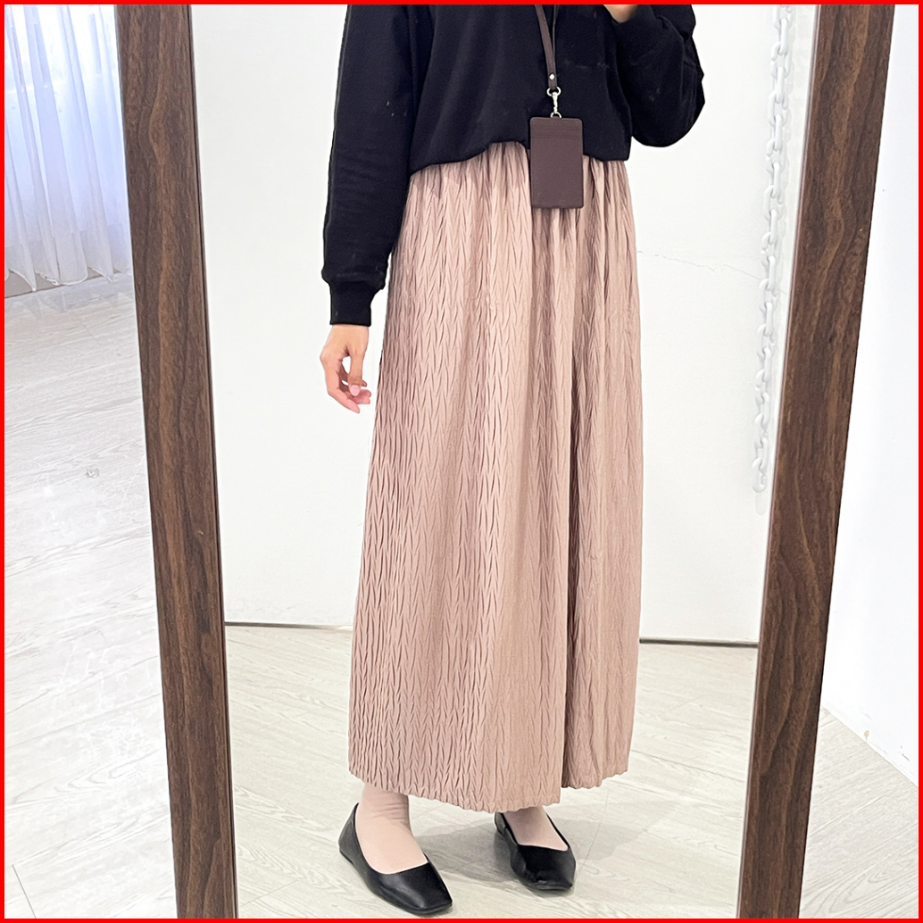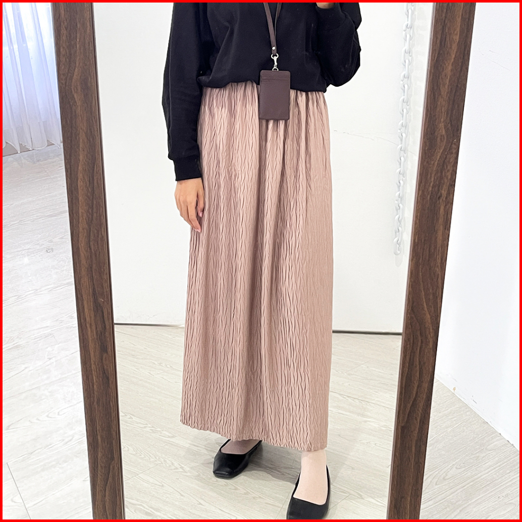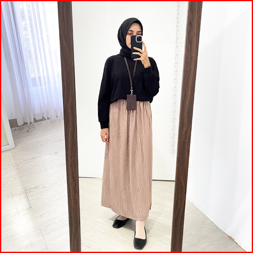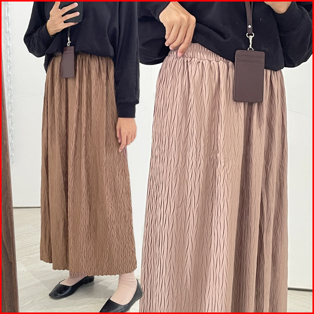 Rokgaliya Fin Skirt Rok Anti Kusut Korean Loose Maxi Polos Pinggang Full Karet