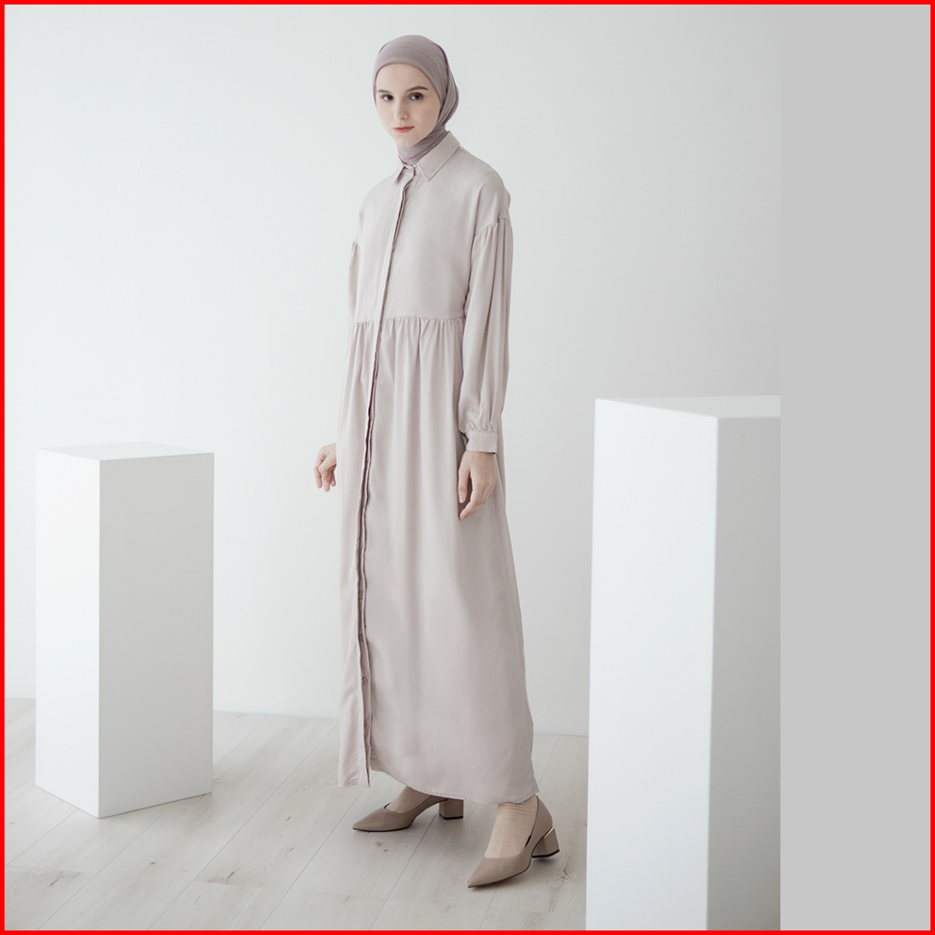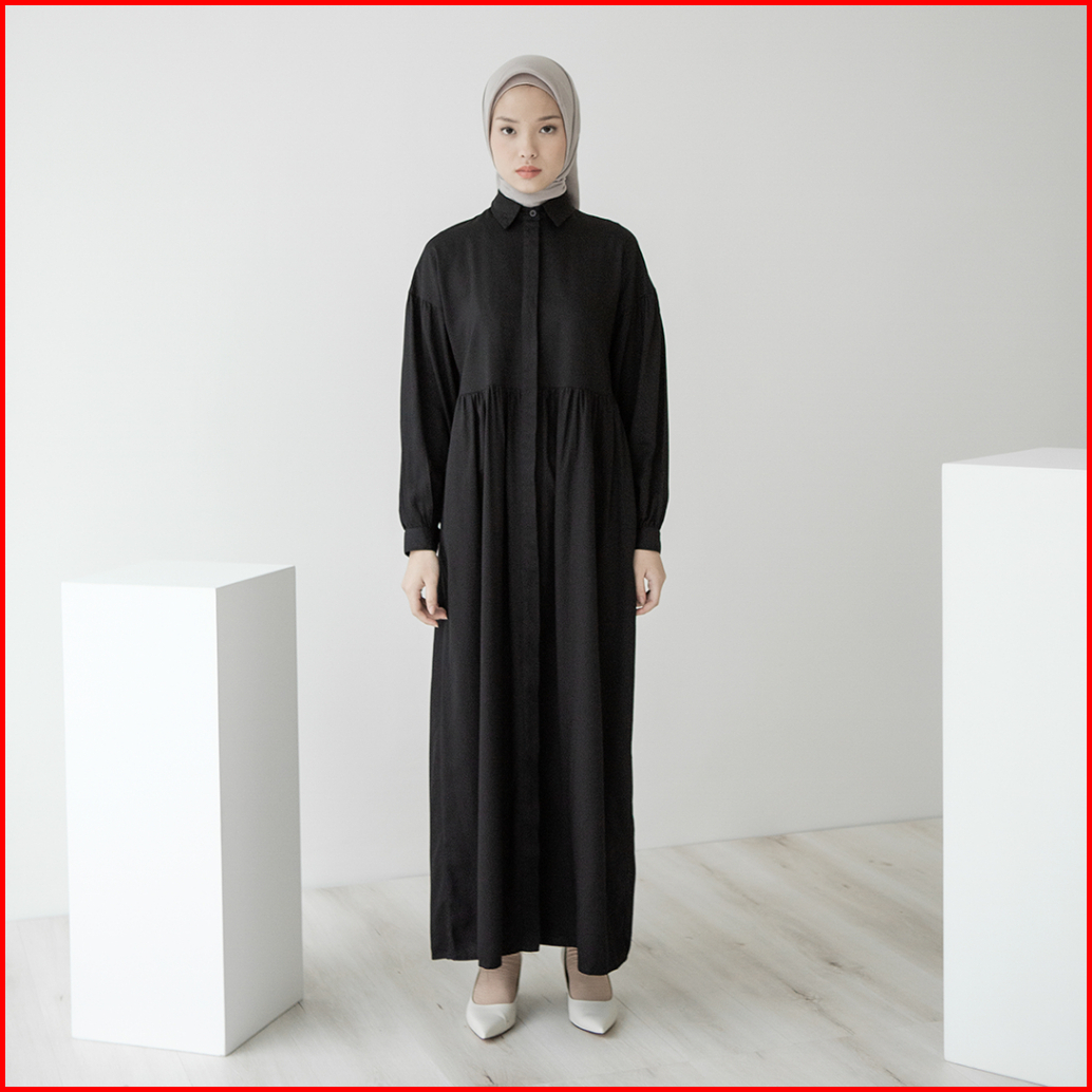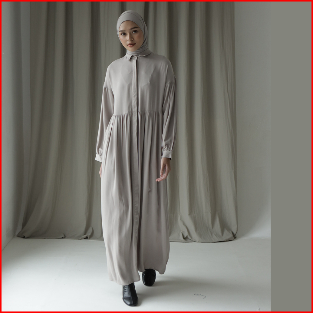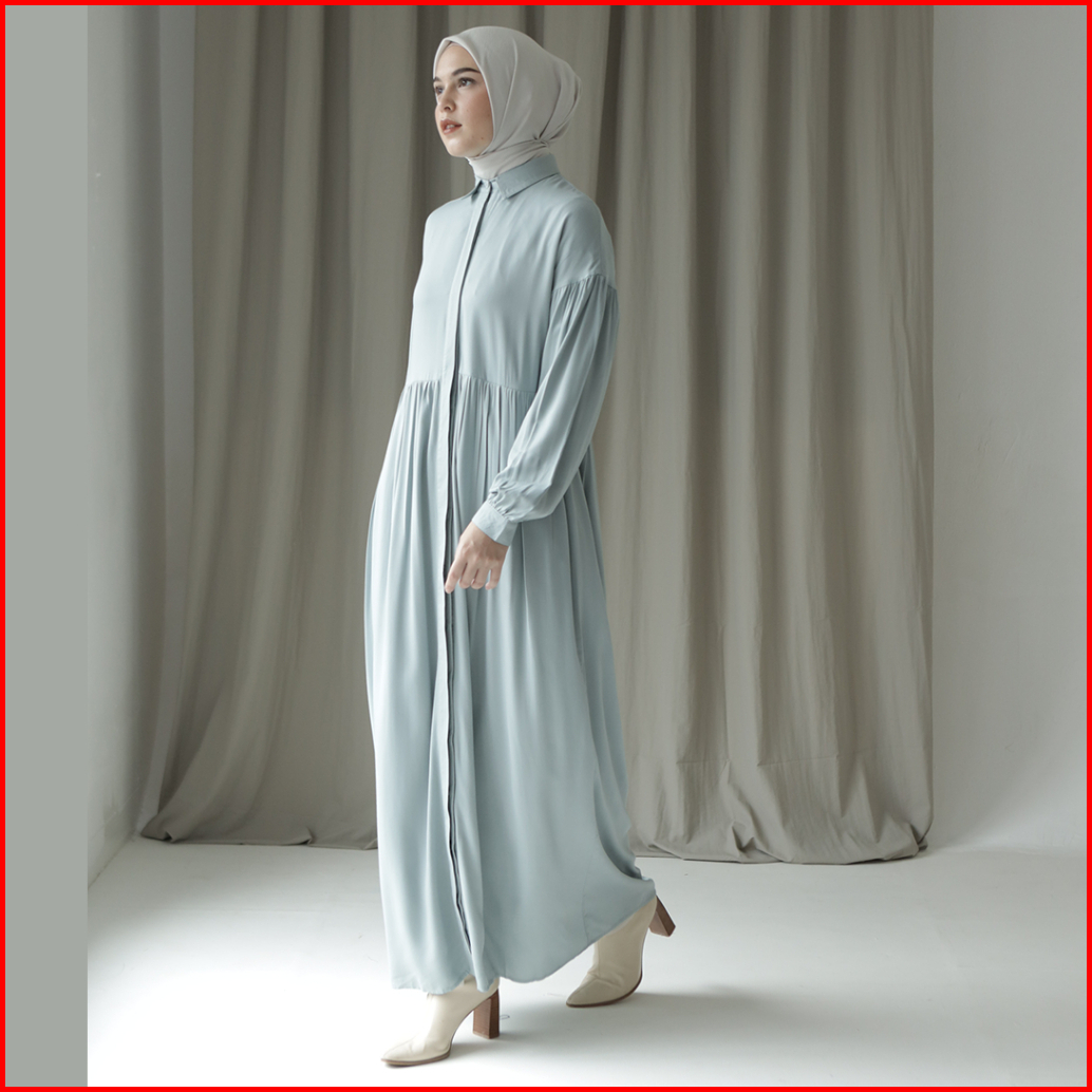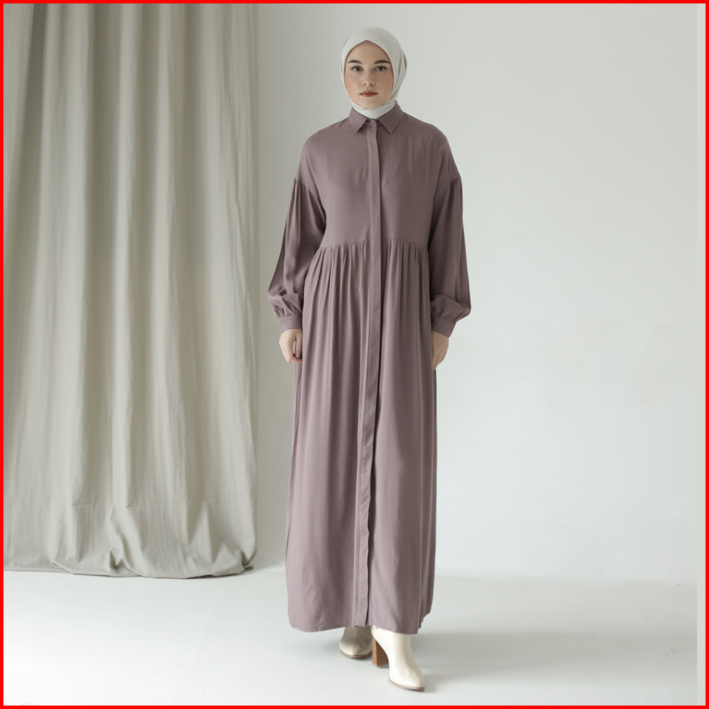 Pradhu By Aska Label - Gamis Wanita Dress Muslim Wanita Bahan Rayon Lengan Panjang Full Kancing Depan Busui Friendly War
