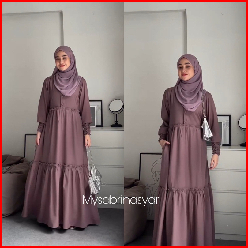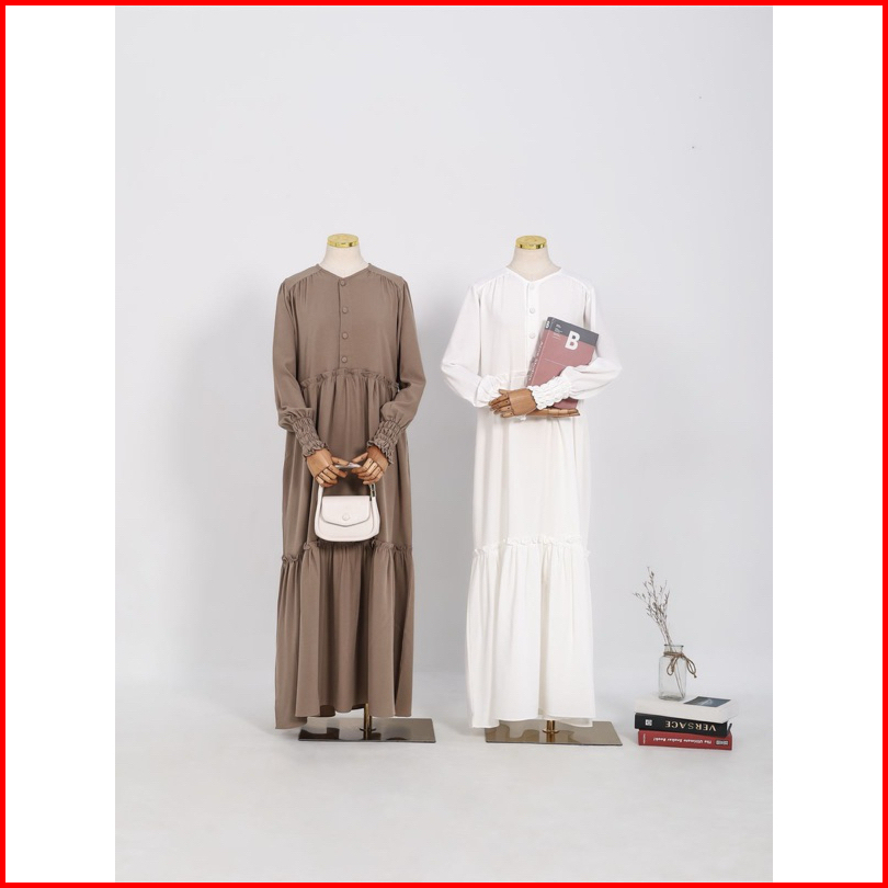 Aruna Dress By Sabrina - Gamis Wanita Polos Bahan Linen Strech Hitam Latte Bw Rosetaupe Size M Xl