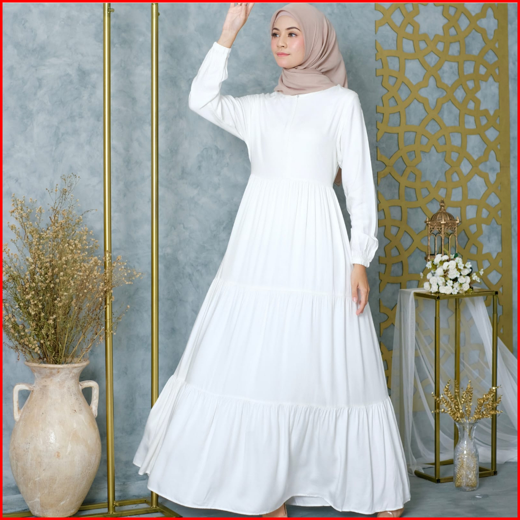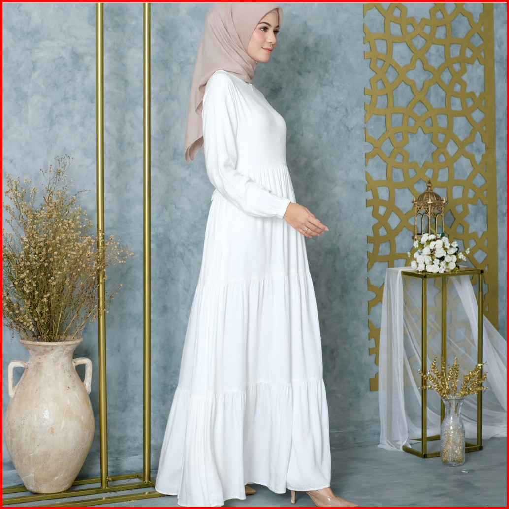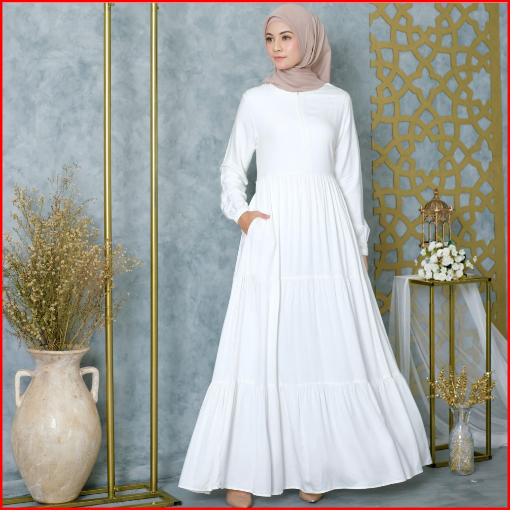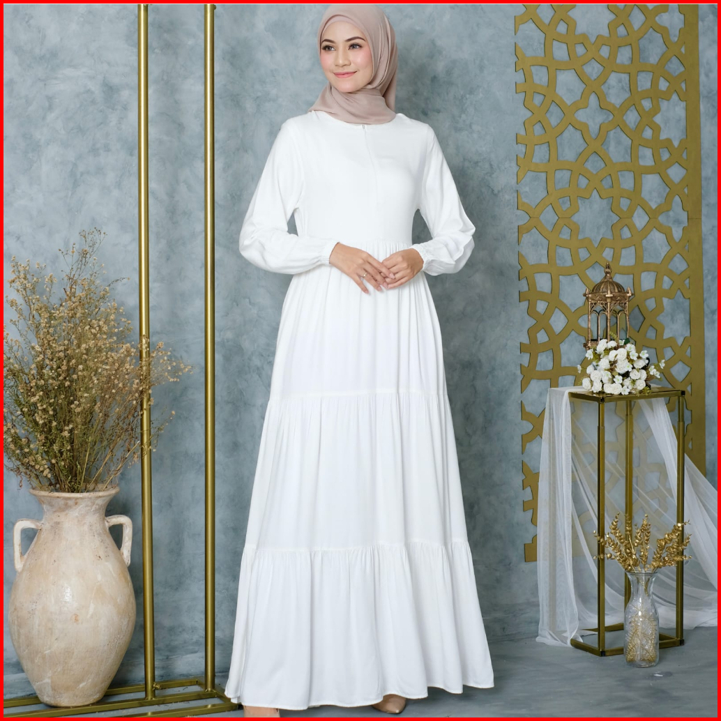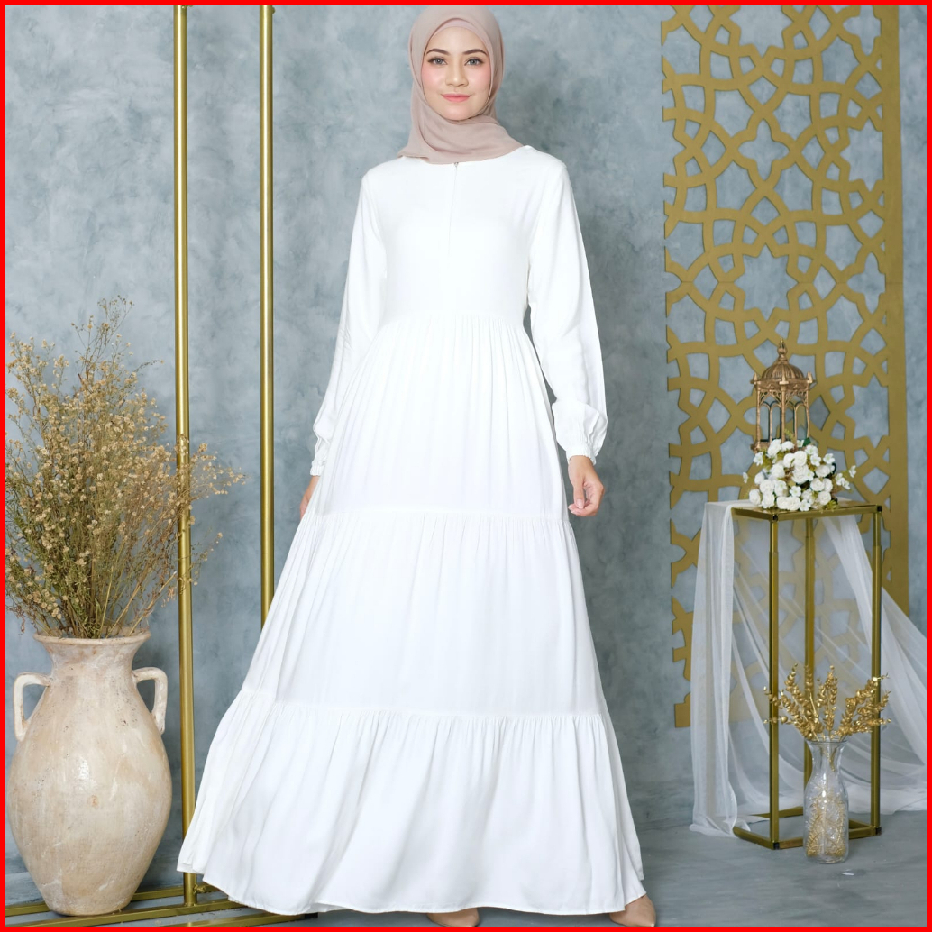 As Mazis Rayon Tebal Adem Homedress Putih White Twill Busui Gamis Rayon Dress Rayon Gamis Busui Cassandra Basic