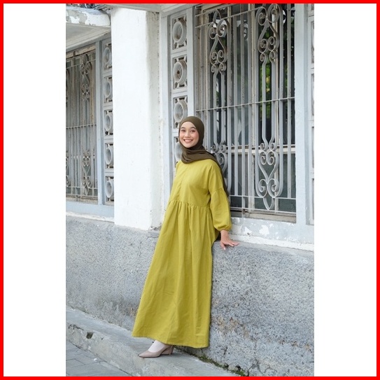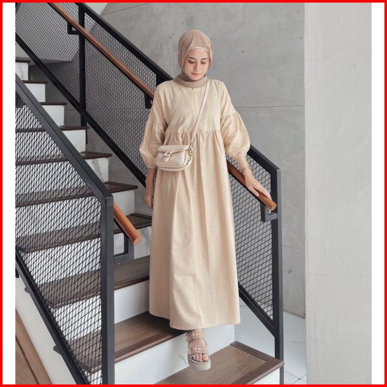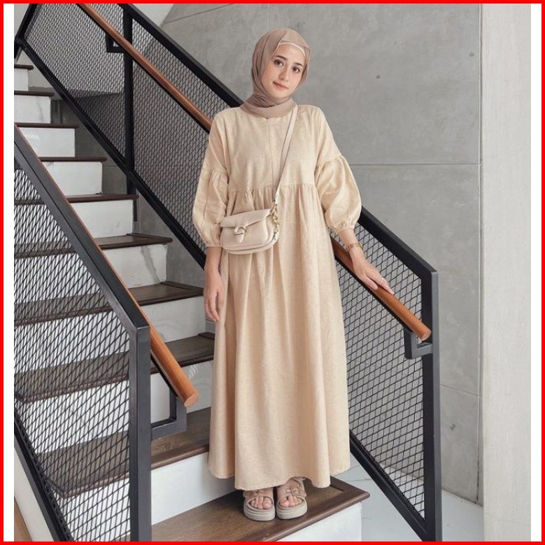 Dress Rawhijab Linen Gamis Midi Wanita Baju Rami Kekinian Muslimah Outer Viral Bahan Premium Atasan Crinkle Jumbo
