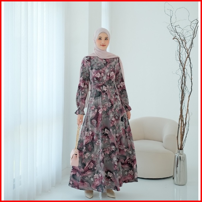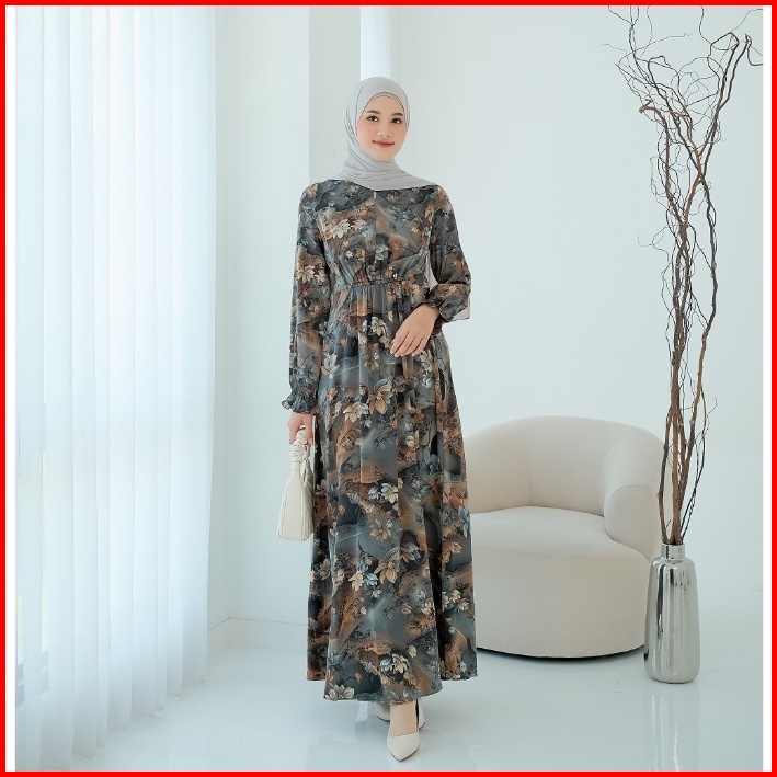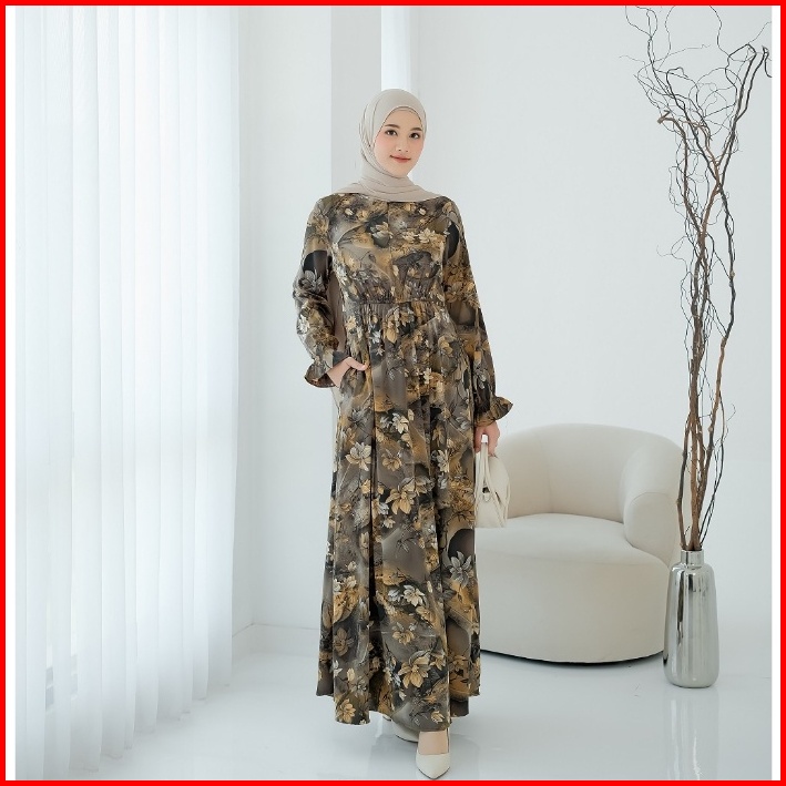 Le Khari Zeline Dress Bahan Premium Brown Silk Gamis Busui Size S-xl