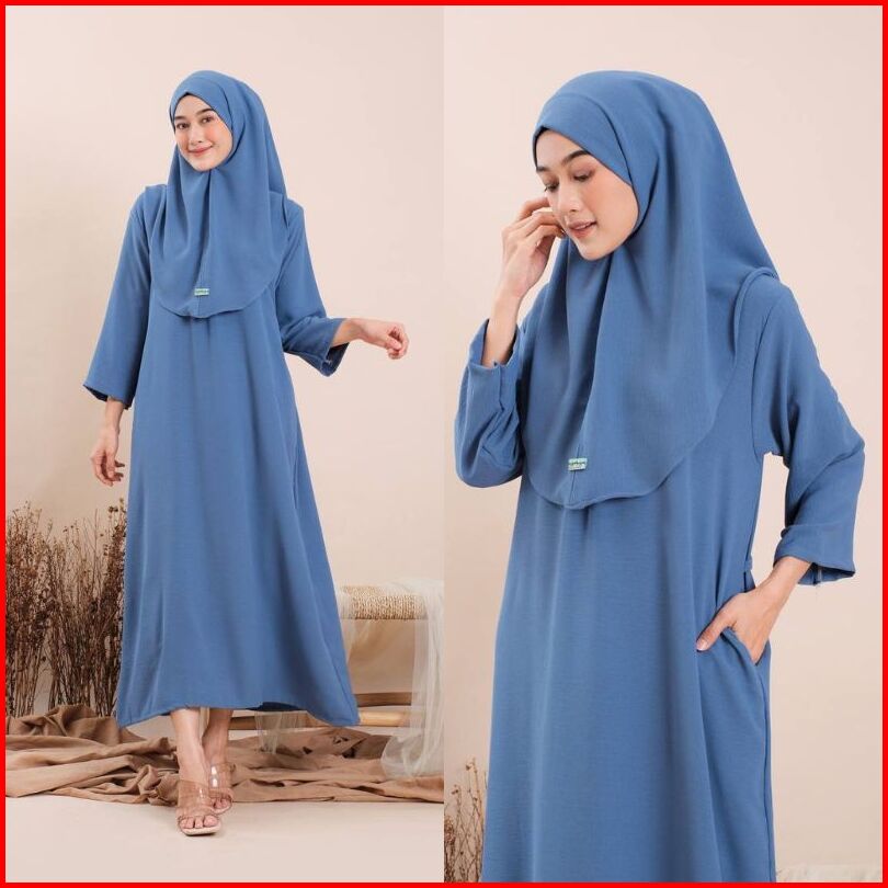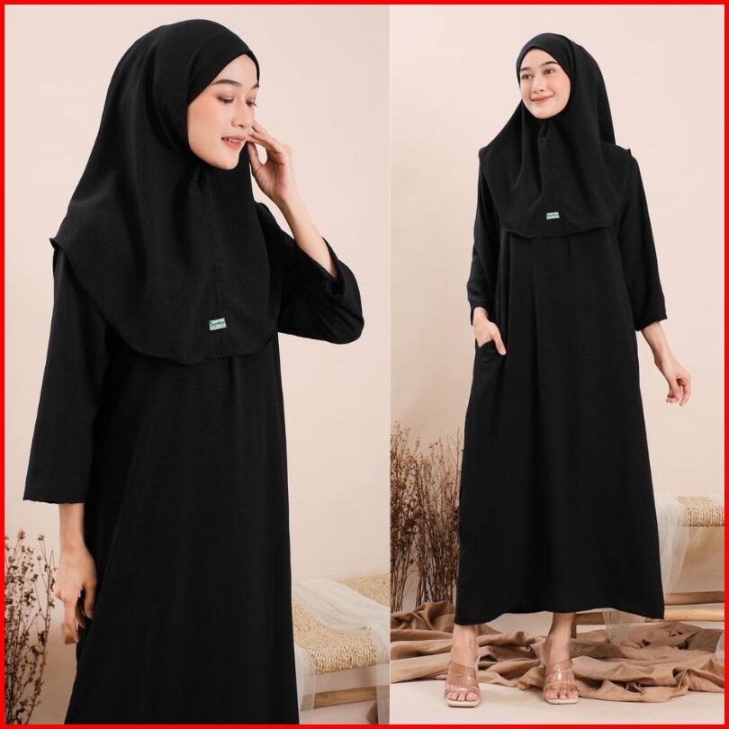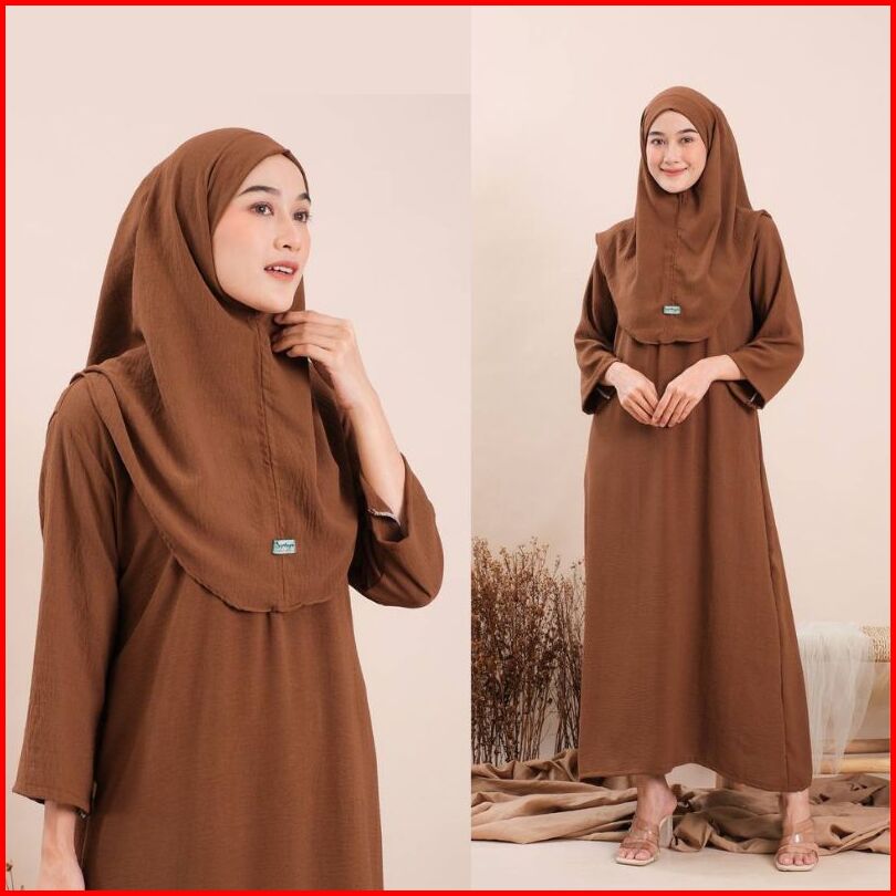 Ayra Dress Abaya Wanita Gamis Set Hijab Bergo Bahan Crinkle Airflow Terbaru