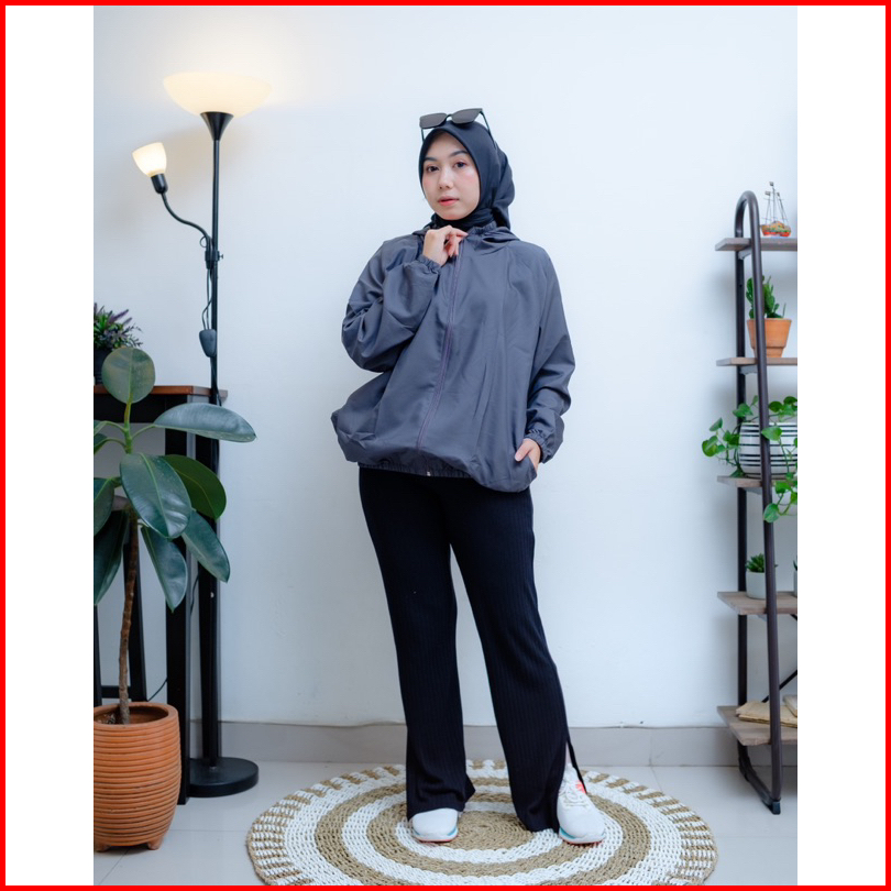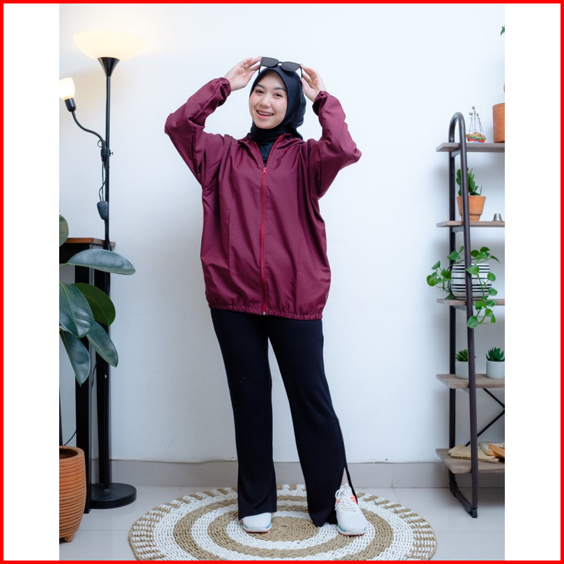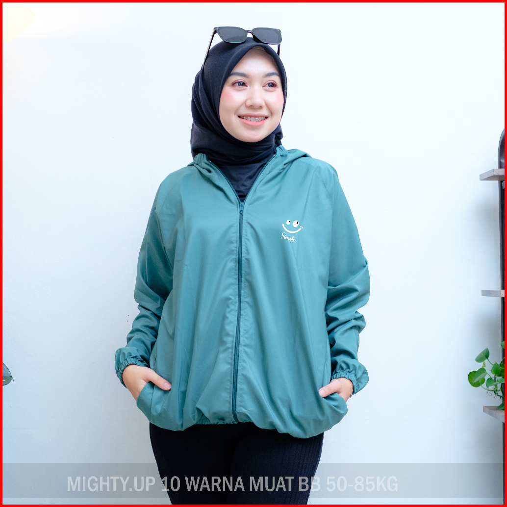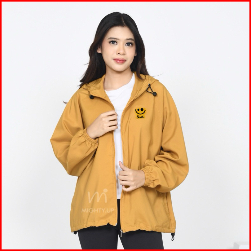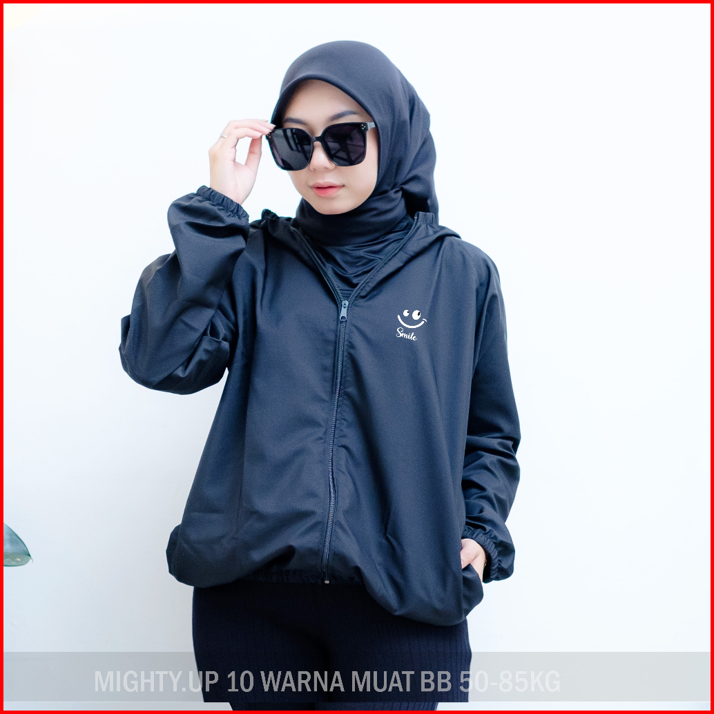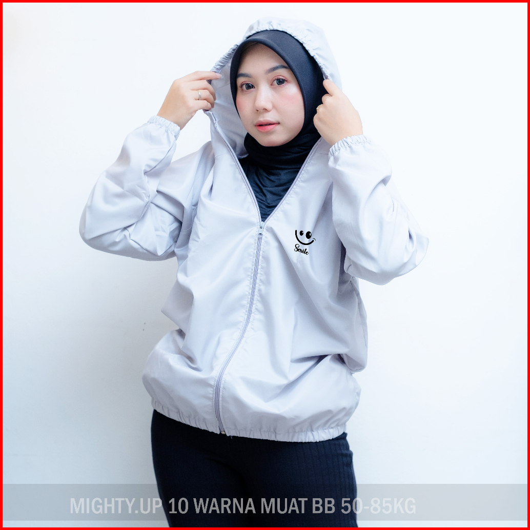Mighty Up Jaket Running Wanita Parasut Windbreaker Anti Hujan Uv Olahraga Wanita Bahan Kaos Catoon Tebal Standart Jaket