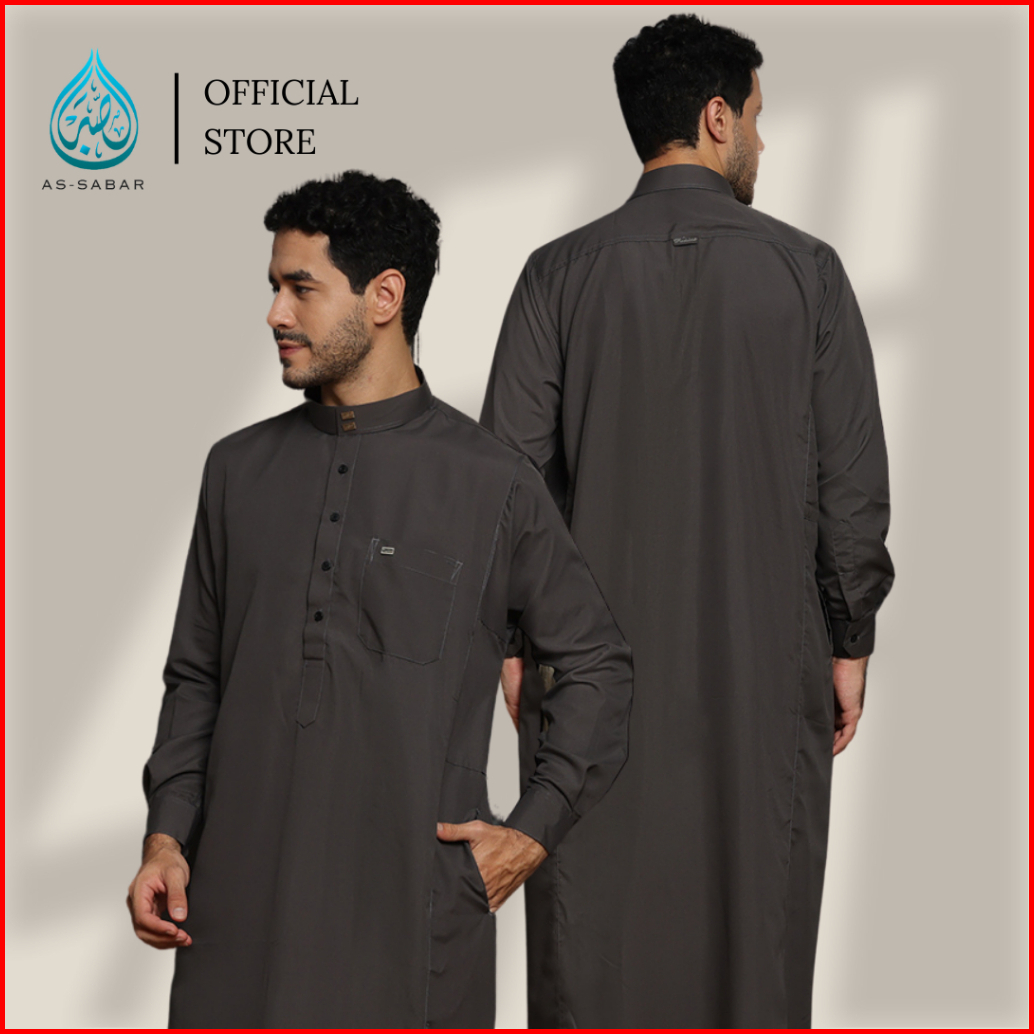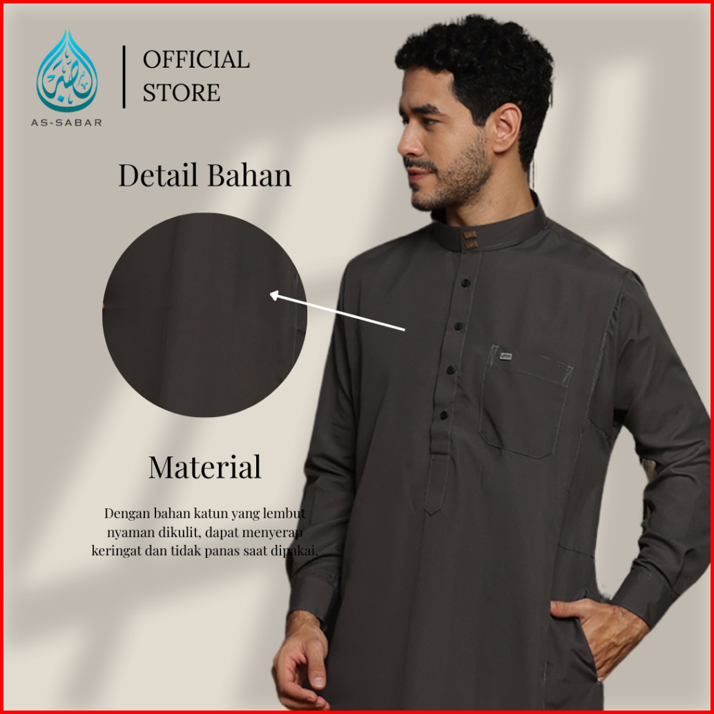 As Sabar Jubah Gamis Laki Laki Pria Dewasa Muslim Lengan Panjang Manset Warna Polos Premium Super Spun