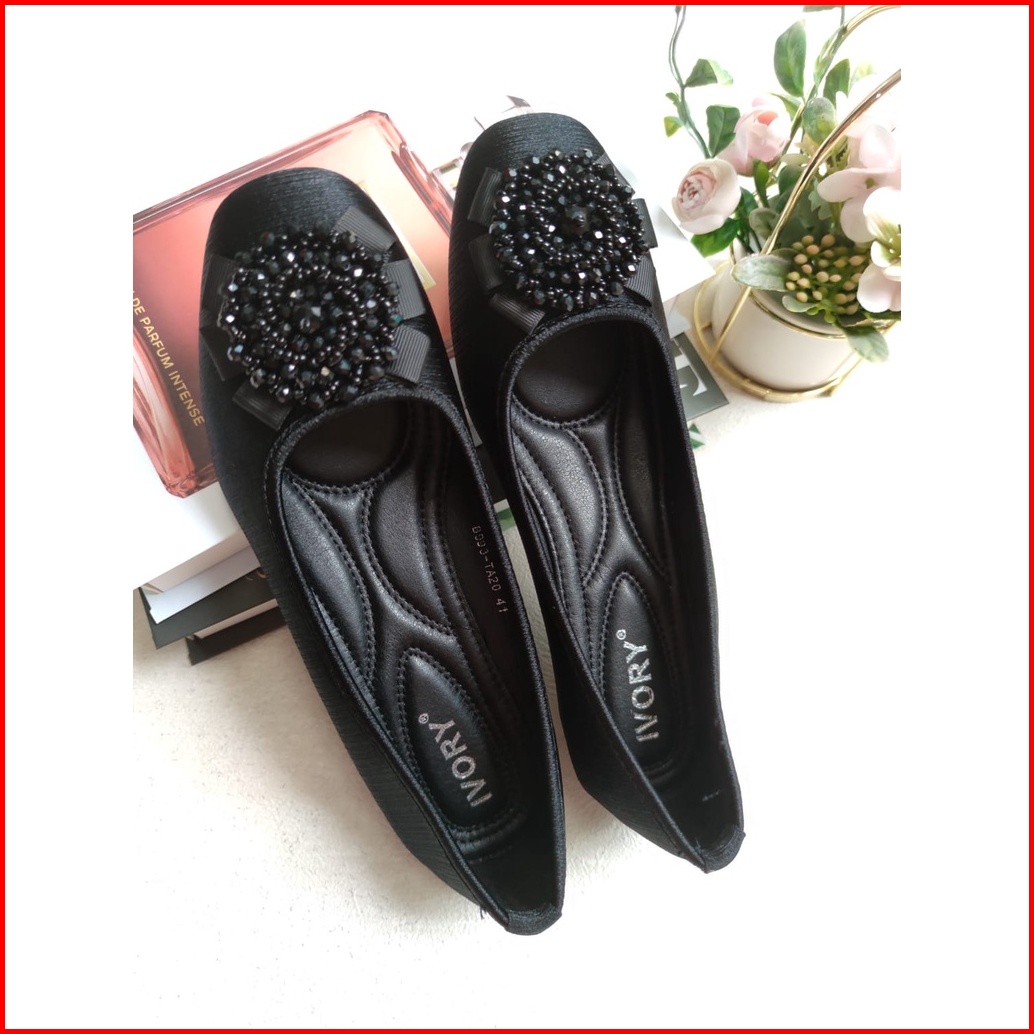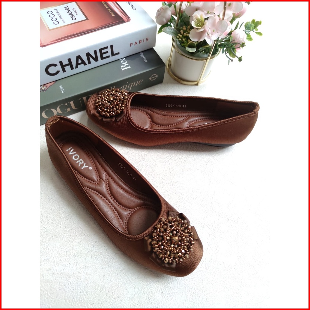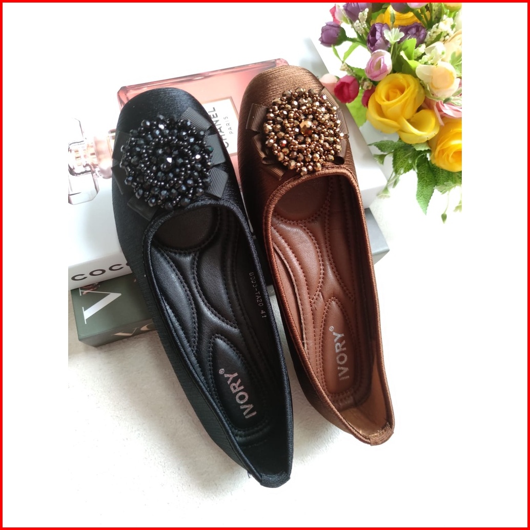 Ivory Sepatu Ukuran Besar Flatshoes Satin Size 41 42 43 44 B993-ta20