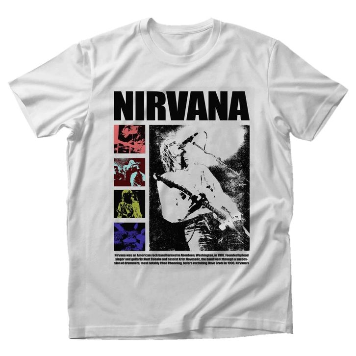 KAOS NIRVANA NEVERMIND KURT GUITAR PUTIH PREMIUM TSHIRT PRIA WANITA