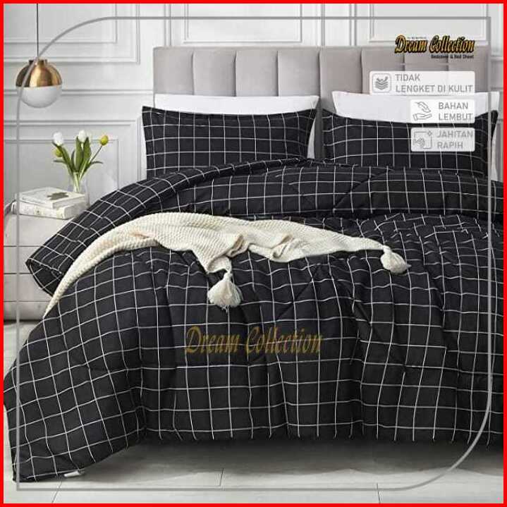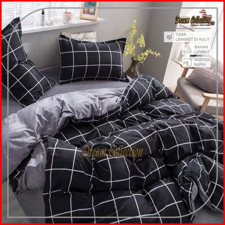 Bedcover Set Motif Kotak-kotak Estetik Minimalis Uk King 180x200 Bahan Katun Premium