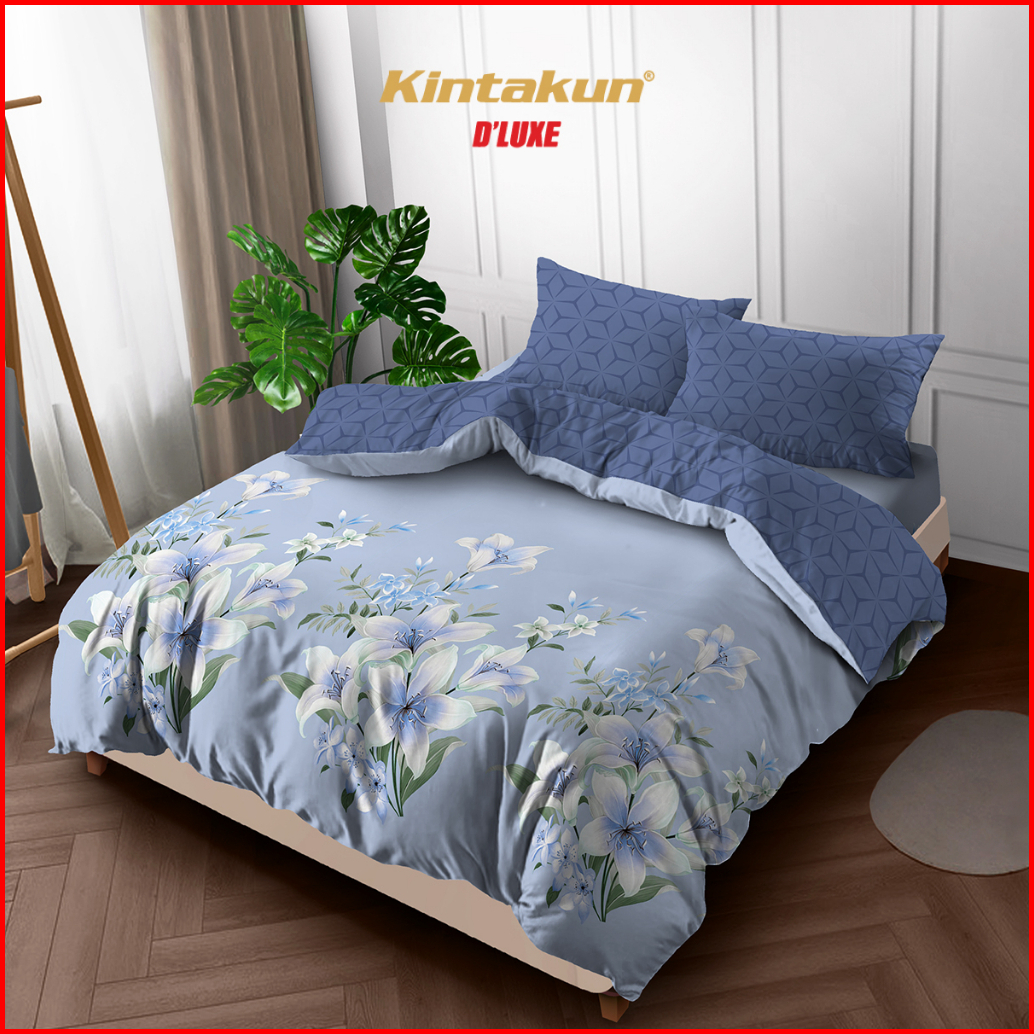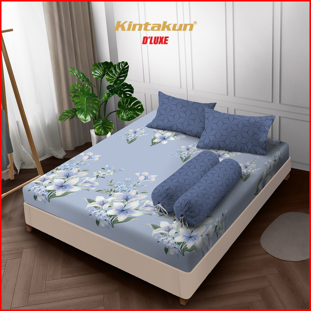 Kintakun Bedcover Set Fitted 160 180 200 Shakila Aesthetic Dluxe Microtex Biru T20 Cm