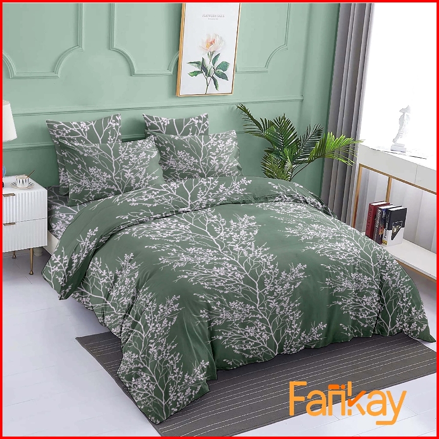 Bed Cover Set Sprei Jeju Sage - Ukuran Lengkap 180x200 160x200 200x200 - Fankay