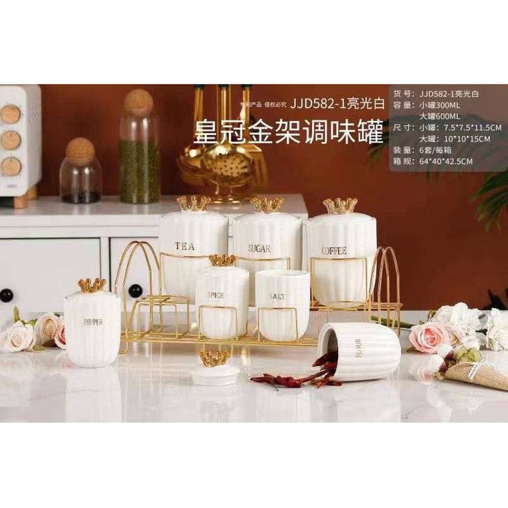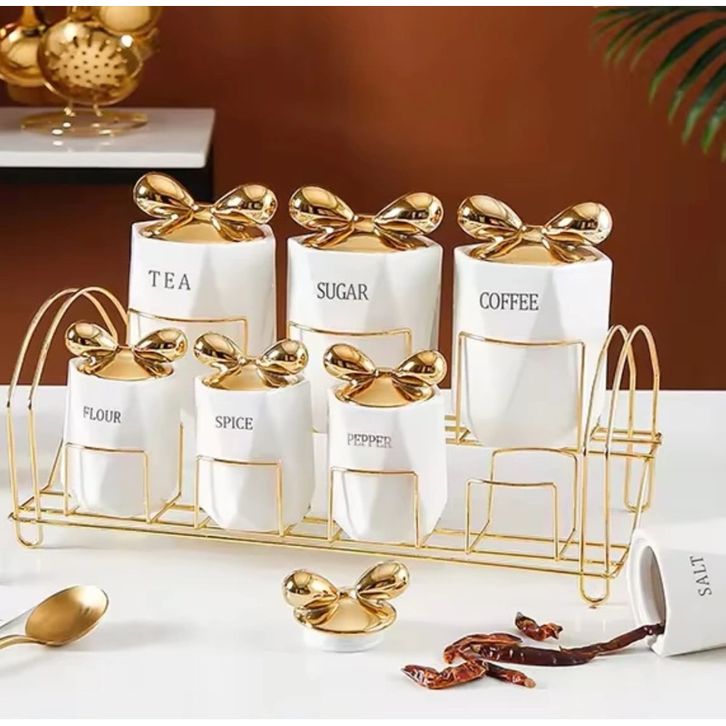 Gratis ongkir - Set wadah bumbu - Tempat bumbu dapur serbaguna - ISLAN Set Keramik Bumbu Mewah 7IN1 Wadah Bumbu Keramik