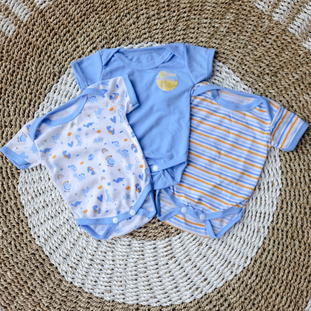 3in1 jumper bayi pendek jumpsuit baby laki laki perempuan motif salur polos dan tabur newborn