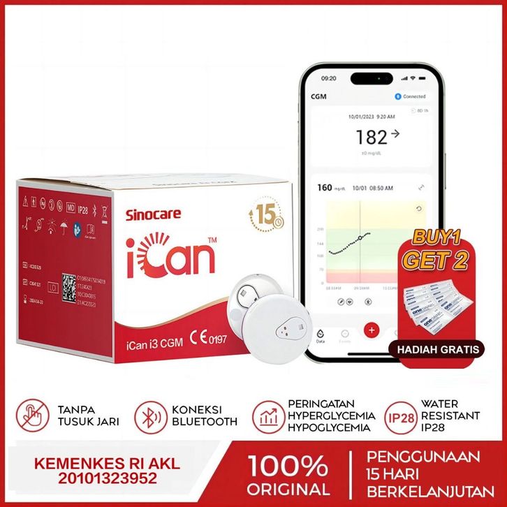 Alat Cek Gula Darah 15 Hari Berkelanjutan 24 Jam Bluetooth Continuous Glucose Monitoring Sinocare Cgm Ican I3