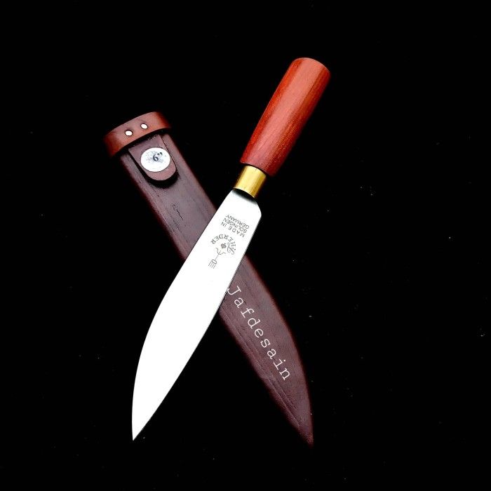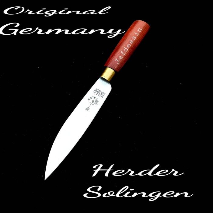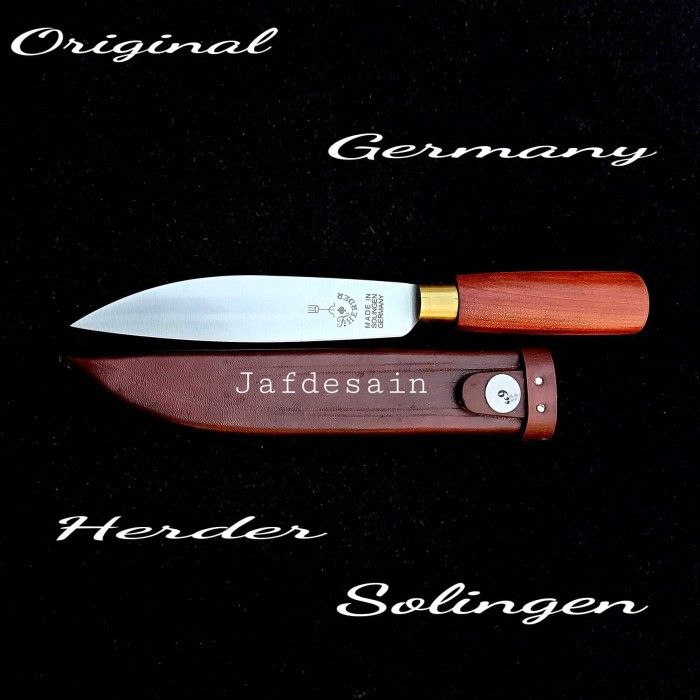 Pisau Herder cap Garpu asli 6 inci Solingen Jerman dan Sarung kulit