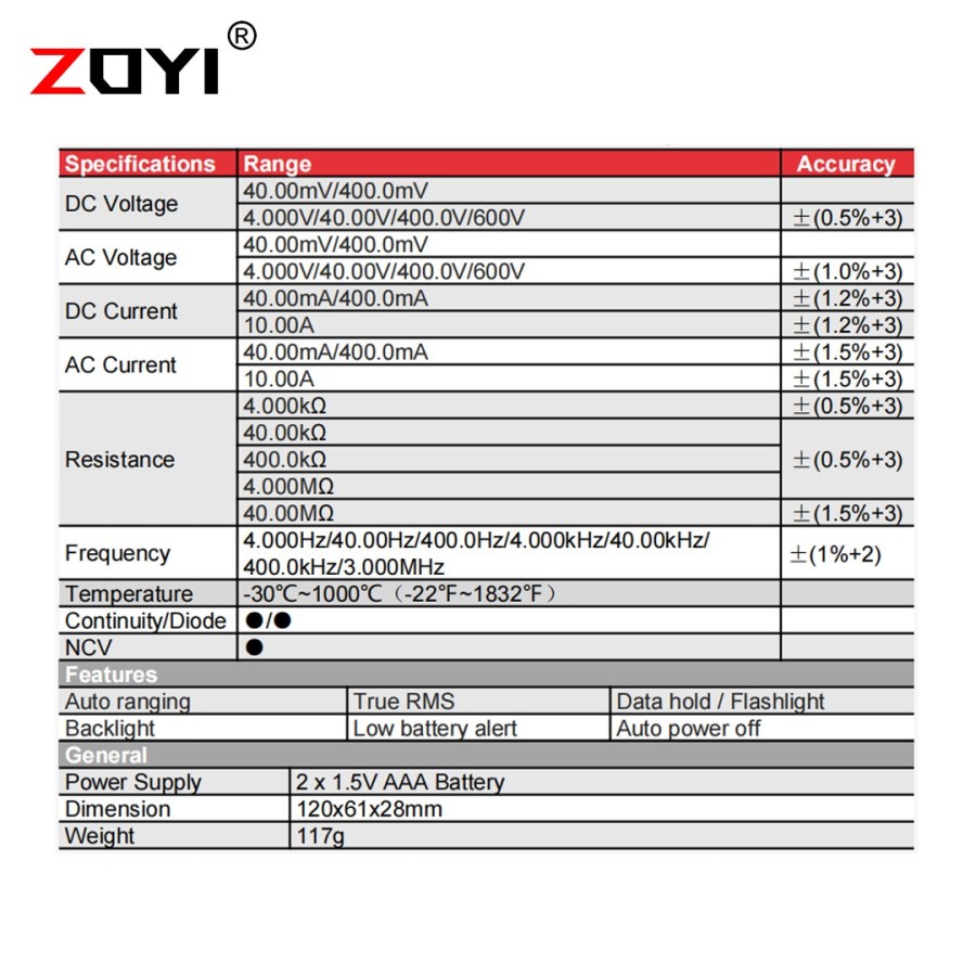 ZOYI ZT-C2 MULTIMETER DIGITAL BUZZER DIODE TEMPERATURE SUHU AC DC VOLTAGE NEW ORIGINAL