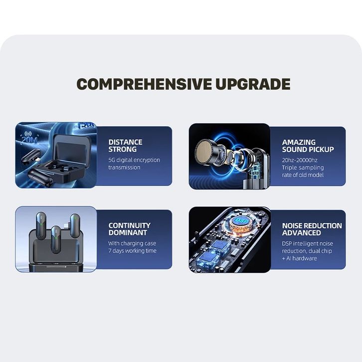 KiiP Wireless M8 Microphone Portable Dual Mic Wireless Clip On 2 In 1 Podcast Vlog Youtuber