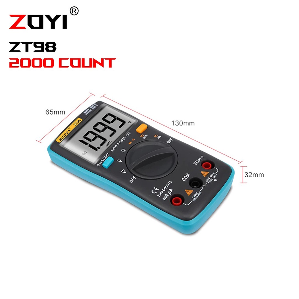 ZOYI ZT98 DIGITAL MULTITESTER 1999 COUNTS BACKLIGHT LCD PORTABLE AC DC SMALL AVOMETER NEW ORIGINAL