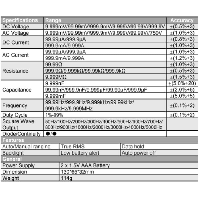 ZOTEK ZT109 MULTITESTER MULTIMETER DIGITAL 9999 COUNT AUTO | MANUAL RANGE NEW ORIGINAL